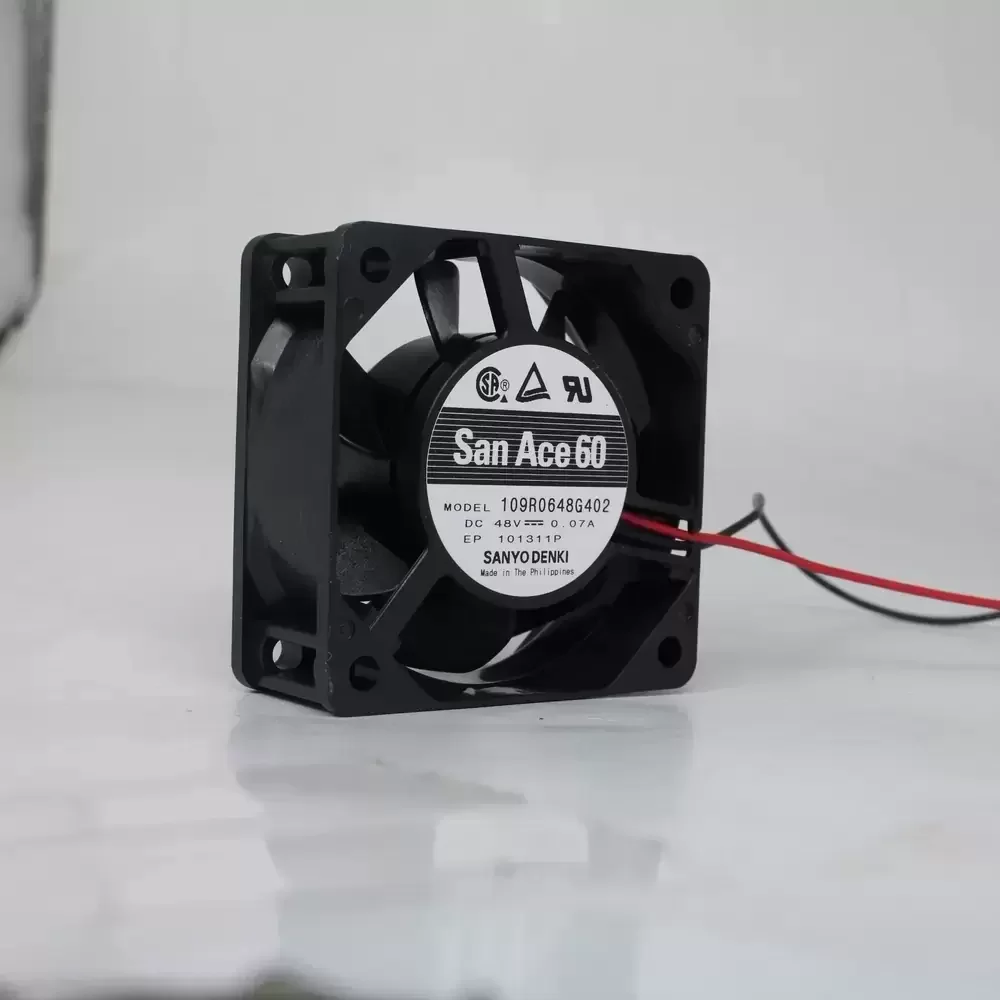 The Sanyo Denki 109R0648G402 is a precision-engineered DC axial fan belonging to the renowned San Ace 60 series, designed to deliver reliable thermal management in demanding industrial environments. This unit features a robust dual ball bearing architecture, which significantly reduces rotational friction and enhances structural rigidity, ensuring a long operational lifespan even under continuous duty cycles. The 48VDC motor is optimized for efficiency, driving a dynamically balanced impeller that maximizes airflow while minimizing acoustic noise. The fan’s housing is constructed to withstand thermal stress, providing low thermal impedance for sensitive electronic components. Its aerodynamic profile is specifically calibrated to maintain consistent static pressure, making it a superior choice for high-density equipment cooling.