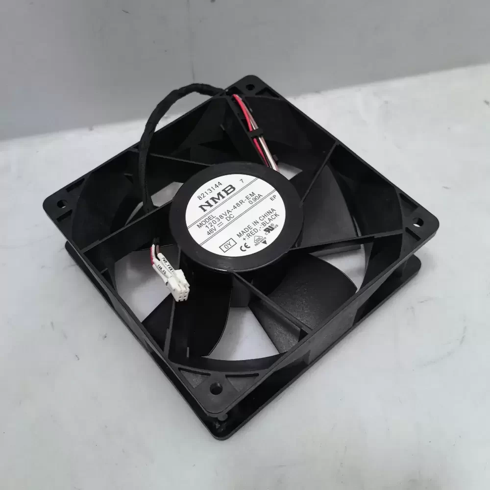The NMB 12038VA-48R-EM-0Y is a high-capacity DC axial fan engineered for critical thermal management in industrial and telecommunications environments. Featuring a robust dual ball bearing architecture and an advanced electromagnetic motor design, this unit delivers exceptional operational stability and longevity under continuous load. The aerodynamic impeller geometry is optimized to generate significant static pressure, effectively overcoming the thermal impedance characteristic of high-density server racks and power electronics. Its structural rigidity and UL94V-0 compliant construction ensure reliability in mission-critical applications requiring precise pulse width modulation (PWM) speed control.