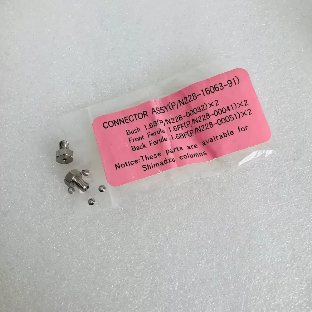 Shimadzu 228-16063-91 features a 1.6 mm outer diameter capillary interface, SUS316 stainless steel construction, and a high-pressure threaded coupling mechanism. The connector assembly is engineered with zero dead volume tolerances to maintain fluidic integrity under high-pressure liquid flow. It utilizes precision-machined ferrules and compression nuts to ensure a leak-free seal across extreme chemical gradients.