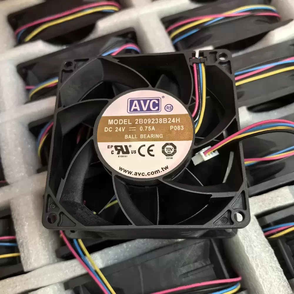 AVC 2B09238B24H-P083 is a 24VDC 92x92x38mm Axial Fan optimized for high-impedance thermal management in industrial power electronics. This unit features a high-torque DC brushless motor with dual ball bearing architecture, ensuring structural rigidity and extended service life under continuous duty cycles. The aerodynamic impeller design is engineered to minimize thermal impedance in densely packed enclosures. Operating at 0.75A with a rated power of 18W, this fan delivers significant static pressure to overcome the resistance of fine-mesh filters and heat sink fins, making it a critical component for maintaining system stability in high-demand environments.
