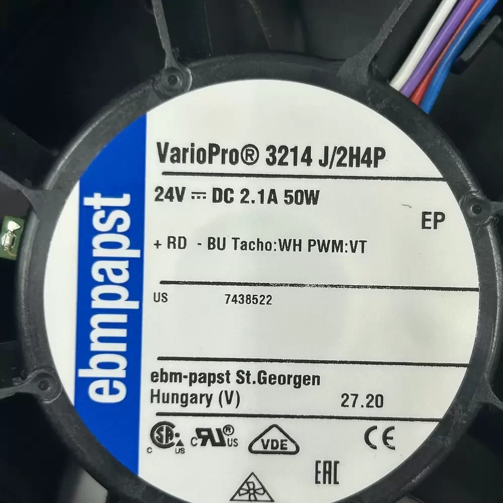 The ebm-papst 3214J/2H4P is a high-performance Axial Fan engineered for demanding thermal management applications requiring substantial static pressure and airflow density. This unit features an advanced electronically commutated (EC) DC motor architecture housed within a fiberglass-reinforced PBT frame, ensuring exceptional structural rigidity and vibration damping under high-speed operation. Utilizing a precision ball bearing system, the fan delivers reliable longevity and reduced friction, optimizing the 50W power profile for maximum aerodynamic efficiency. The 4-wire configuration supports precise speed control via PWM, making it ideal for systems necessitating dynamic thermal impedance regulation and rapid heat dissipation.