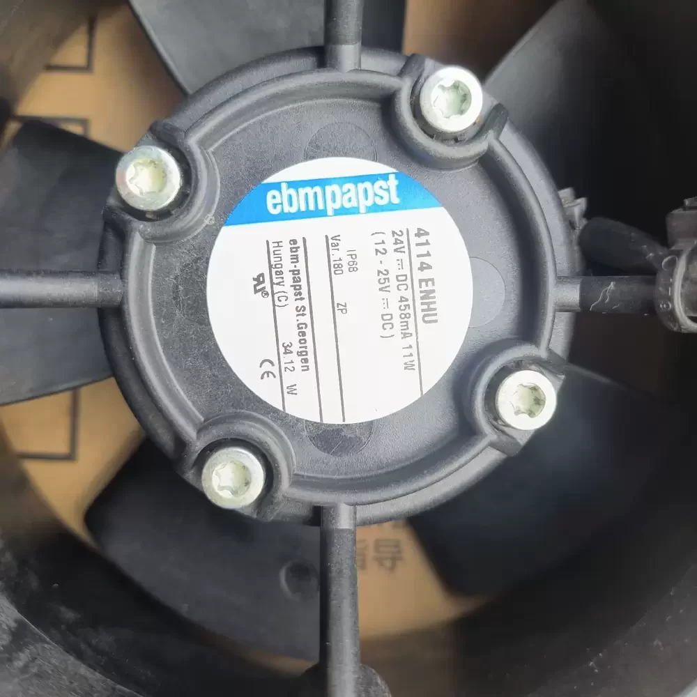 The ebm-papst 4114ENHU-180 is a robust Axial Fan engineered for demanding industrial environments requiring rigorous thermal management and environmental resilience. Featuring an advanced DC motor architecture, this unit optimizes aerodynamic throughput while maintaining exceptional structural rigidity under high-static pressure loads. The design incorporates a fully encapsulated stator providing IP68 ingress protection, significantly lowering thermal impedance in harsh, moisture-rich, or dusty operating conditions. Its precision-balanced impeller ensures consistent airflow delivery, making it a critical component for systems demanding high reliability and longevity. The fan utilizes durable ball bearing mechanisms to sustain performance across a wide voltage range of 12-25V, ensuring stable operation even during power fluctuations.