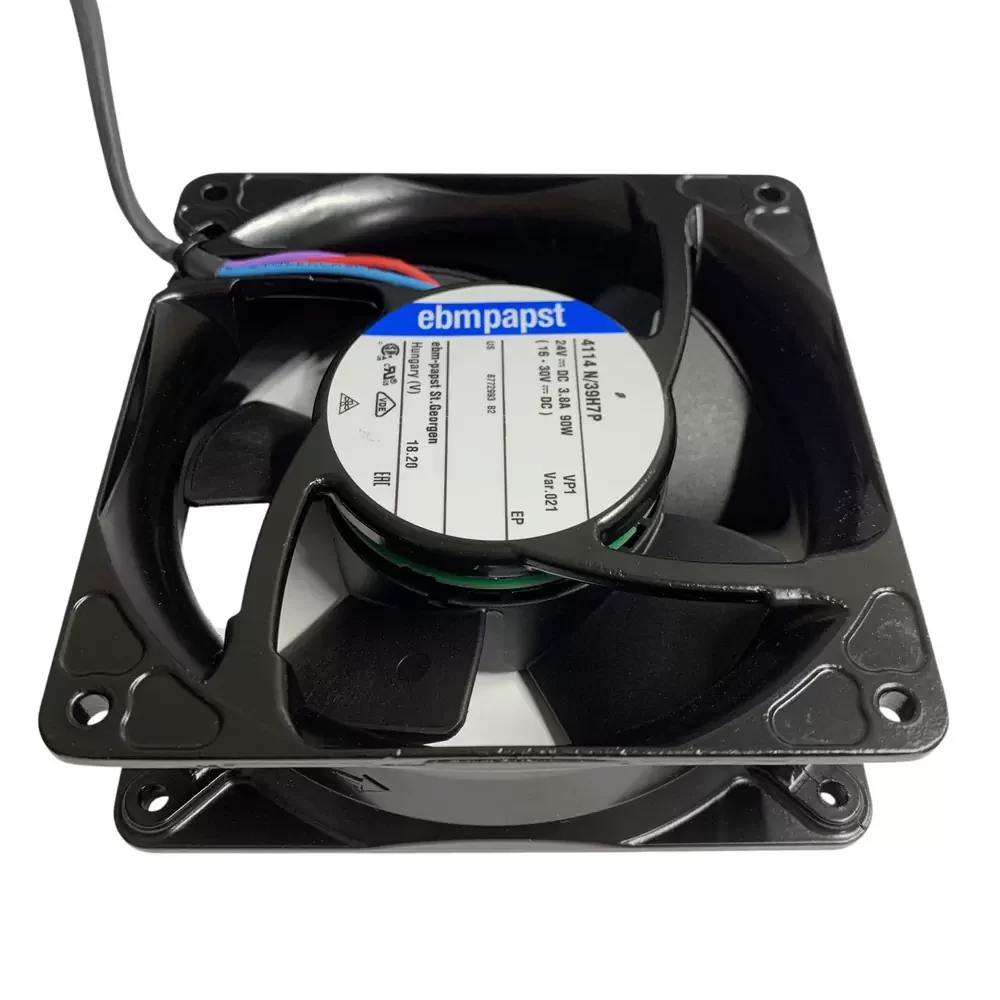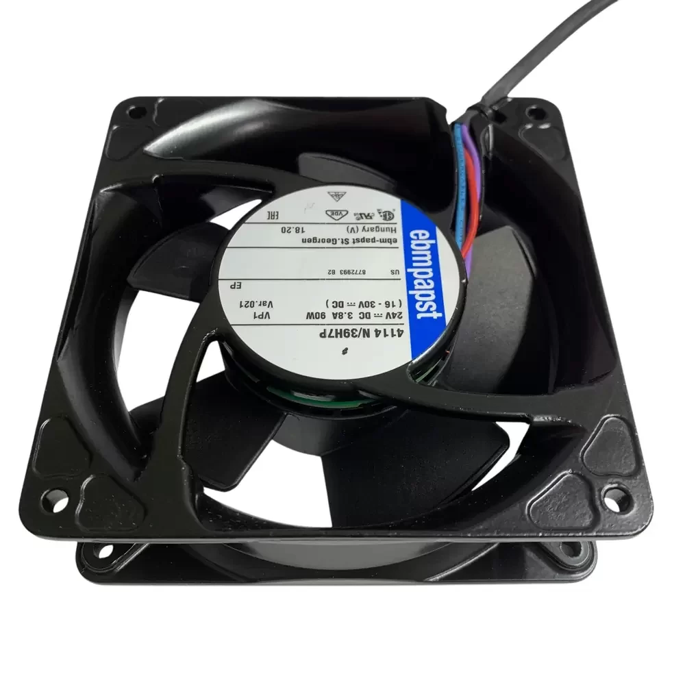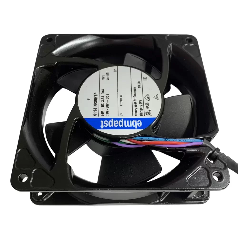 The ebm-papst 4114N/39H7P-021 is a high-performance Axial Fan engineered for demanding industrial thermal management applications requiring exceptional air movement capabilities. This unit features a robust DC motor architecture paired with precision ball bearings to ensure operational longevity and structural rigidity under high-stress conditions. With a substantial power rating of 90W, it delivers superior airflow capabilities, effectively overcoming significant system thermal impedance in densely packed electronic enclosures. The aerodynamic design of the impeller minimizes turbulence while maximizing static pressure, making it an ideal solution for critical cooling requirements where reliability and power density are paramount.