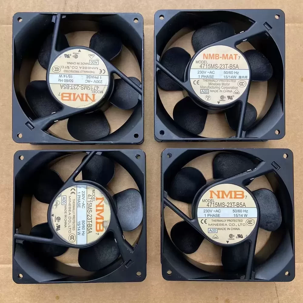 The NMB-MAT 4715MS-23T-B5A-A00 is a robust AC Axial Fan engineered for high-reliability industrial cooling applications. This unit utilizes a precision-wound shaded pole induction motor housed within a die-cast aluminum frame, ensuring superior structural rigidity and thermal dissipation under continuous operation. Featuring a dual ball bearing architecture, the fan delivers consistent aerodynamic performance while minimizing frictional wear, resulting in an extended service life. The impeller is designed to optimize airflow dynamics, reducing turbulence and thermal impedance within enclosed systems. It operates efficiently on 230V AC single-phase power, making it suitable for diverse global power grids requiring stable thermal management solutions.