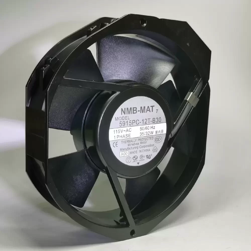 The NMB-MAT 5915PC-12T-B30-A00 is a robust AC Axial Fan engineered for high-reliability industrial cooling applications. Utilizing a precision dual ball bearing architecture, this unit ensures minimal friction and extended operational service life under continuous duty cycles. The aerodynamic impeller design optimizes airflow efficiency while maintaining structural rigidity within the aluminum die-cast frame. Designed for 115VAC operation, it delivers superior thermal impedance management, making it suitable for demanding environments requiring consistent static pressure and volumetric flow.