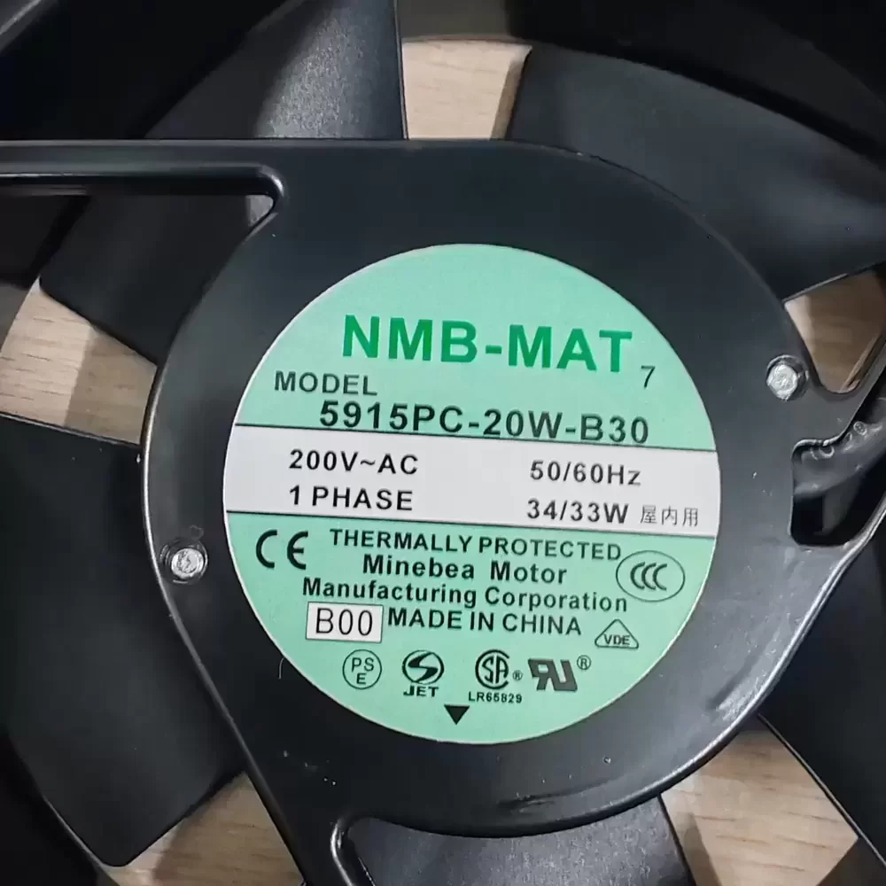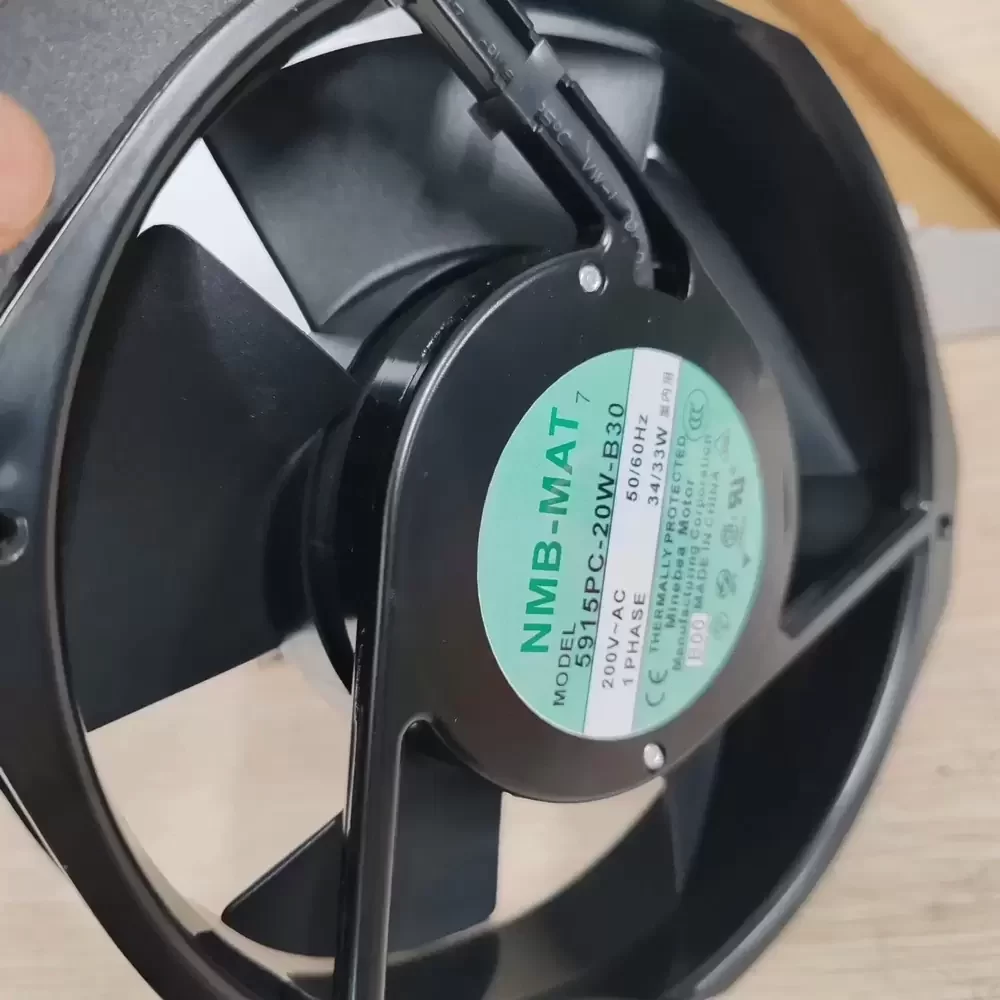 The NMB 5915PC-20W-B30-B00 is a high-capacity AC Axial Fan engineered for demanding thermal management in industrial environments. Utilizing a robust shaded pole motor architecture and a precision dual ball bearing system, this unit ensures low thermal impedance and exceptional structural rigidity under continuous duty cycles. The aerodynamic impeller design is optimized for high static pressure and volumetric airflow, while the die-cast aluminum housing provides superior heat dissipation and mechanical integrity. This model is specifically designed to maintain stable cooling performance in high-impedance systems where reliability and long-term service life are critical operational requirements.