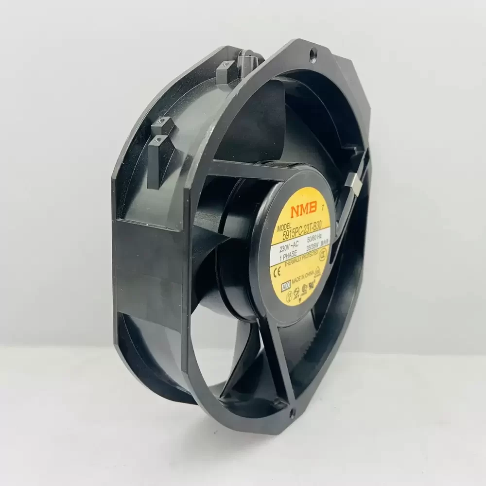 The NMB-MAT 5915PC-23T-B30-A00 is a robust AC Axial Fan engineered for high-reliability industrial thermal management. Utilizing a shaded pole induction motor and precision ball bearing architecture, this unit ensures consistent airflow delivery and reduced mechanical friction over extended operational lifecycles. The 172mm aluminum die-cast housing provides superior structural rigidity and heat dissipation, while the polycarbonate impeller is balanced for aerodynamic efficiency. Designed with impedance protection to prevent motor burnout, the 5915PC-23T-B30-A00 maintains optimal thermal impedance in demanding environments, making it a staple for critical cooling applications requiring durability and stable static pressure performance.