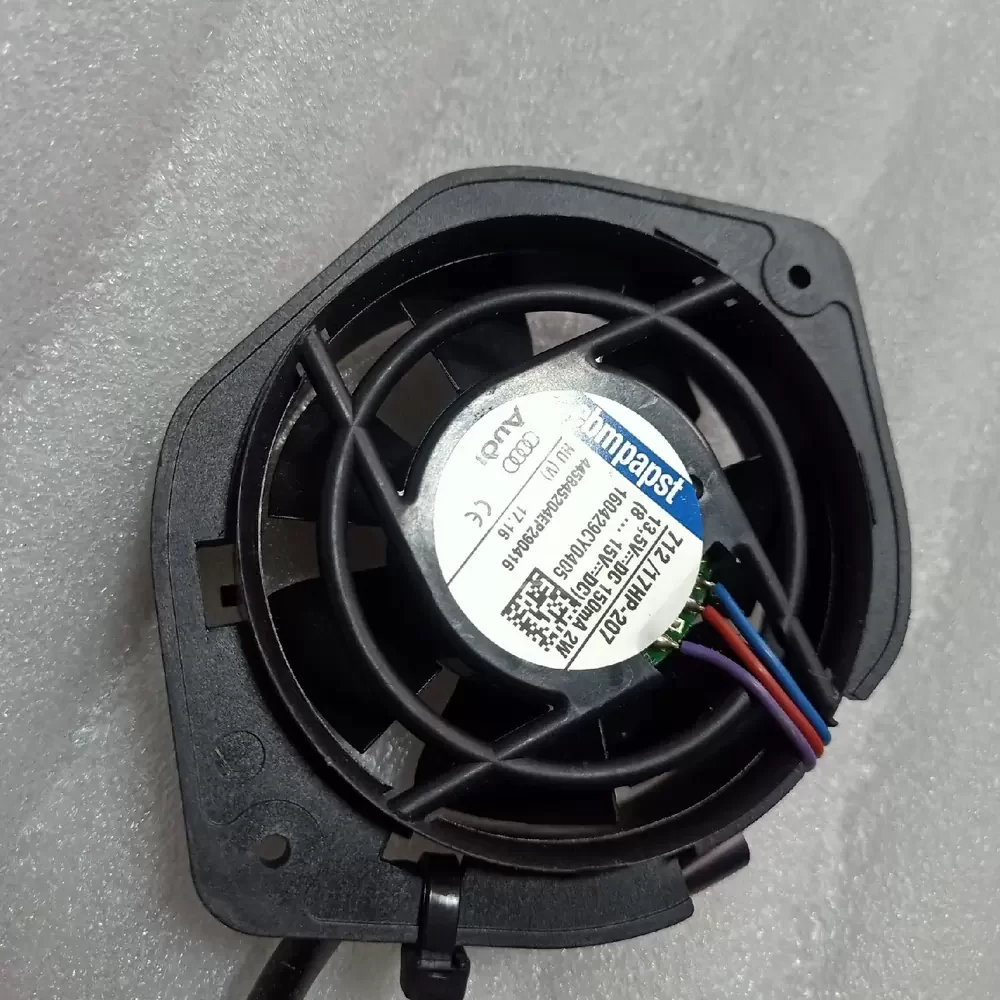 This automotive-grade blower is primarily utilized in vehicle climate control systems, specifically designed for seat ventilation and heating distribution. The 712/17HP-207 ensures effective air circulation through perforated leather and seat foam, regulating surface temperature for occupant comfort. Beyond the Audi A6L/C7 series, the 712/17HP-207 is suitable for custom automotive retrofit projects, specialized cabin cooling solutions, and compact industrial spot cooling applications where reliable, high-pressure airflow is required in a confined space.