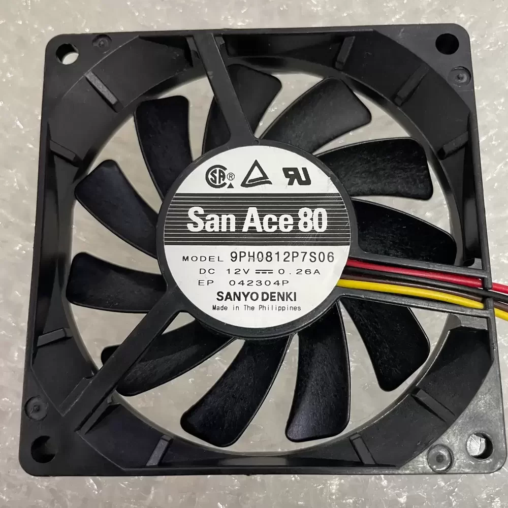 Sanyo Denki 9PH0812P7S06 is a 12VDC 80x80x15mm Axial Fan optimized for high-density thermal management in space-constrained enclosures. This San Ace 80 series model utilizes a sophisticated dual ball bearing architecture to minimize mechanical friction and extend service life in continuous duty cycles. The aerodynamic impeller design is engineered to reduce thermal impedance while maintaining structural rigidity under high rotational velocities. Operating at a rated current of 0.26A, this DC fan delivers a balanced performance profile with a nominal speed of approximately 3500 RPM, ensuring efficient heat dissipation with low acoustic signatures. The integrated 4-wire PWM control allows for precise thermal regulation, making it a critical component for systems requiring dynamic cooling response.