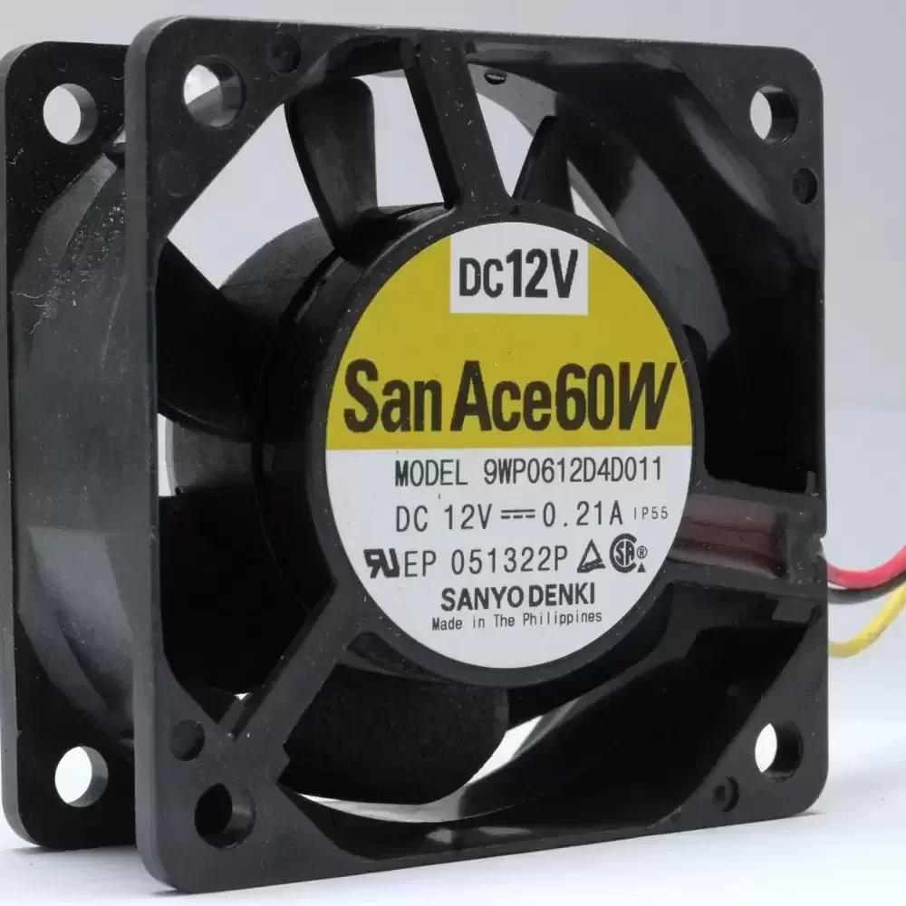 The Sanyo Denki 9WP0612D4D011 is a robust industrial cooling solution from the renowned San Ace 60W series, engineered specifically for harsh environments requiring ingress protection. This axial fan features a sophisticated DC motor architecture supported by dual ball bearings, ensuring exceptional longevity and structural rigidity even under continuous operation. Designed with an IP55 rating, the unit offers significant resistance to dust and water jets, making it ideal for outdoor or industrial equipment where standard fans would fail. The aerodynamic impeller design optimizes thermal impedance, delivering a high airflow-to-noise ratio while maintaining stable static pressure performance.
