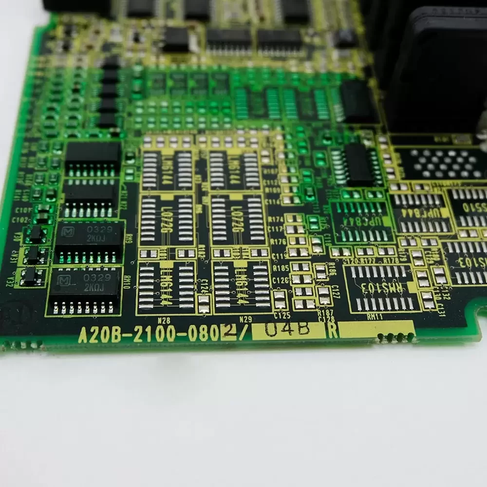 FANUC A20B-2100-0802 is a 200 VAC, 3 phase AC spindle amplifier control board engineered for the Alpha SPMC i series modules. This printed circuit board functions as the primary logic and drive controller for spindle motors, featuring 5 communication ports and a 2 digit diagnostic display. The hardware architecture supports direct integration with SPMC-2.2i through SPMC-22i amplifier units, utilizing advanced digital signal processing for precise motor velocity and torque regulation. Constructed with industrial-grade electronic components, the board ensures stable power distribution and real-time feedback processing within high-demand spindle drive systems.