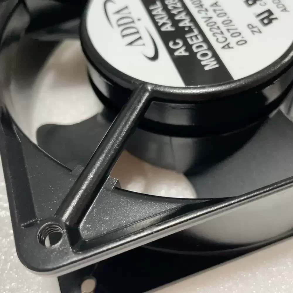 The ADDA AA1282LB-AW is a high-efficiency AC axial fan engineered for demanding thermal management environments. Utilizing a robust dual ball bearing architecture, this unit ensures long-term structural rigidity and minimal friction under continuous duty cycles. The aerodynamic impeller design is optimized to reduce thermal impedance within high-density enclosures, providing consistent laminar airflow. Its motor technology is designed for stability across the 220V to 240V range, maintaining precise rotational velocity to mitigate heat accumulation in sensitive electronic assemblies. The die-cast housing provides superior heat dissipation and mechanical protection for the internal windings.