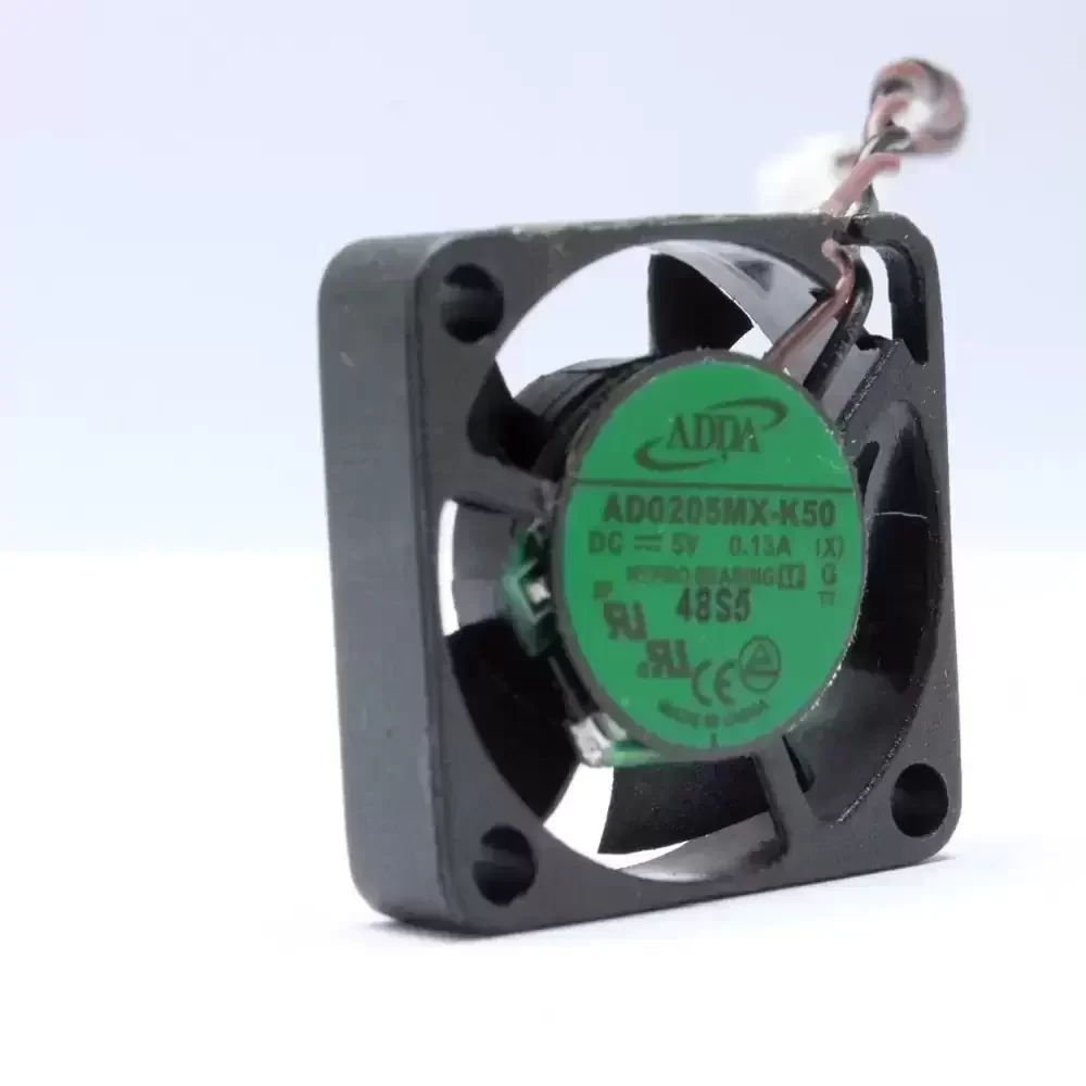 The ADDA AD0205MX-K50 is a precision-engineered DC Axial Fan designed to deliver optimal thermal management in compact electronic assemblies. Utilizing ADDA’s proprietary Hypro Bearing technology, this unit bridges the gap between sleeve and ball bearings, offering extended service life and reduced frictional noise compared to standard sleeve variants. The 20mm frame is constructed from high-grade thermoplastic, ensuring structural rigidity and resistance to thermal deformation under continuous operation. With a rated voltage of 5VDC and a current draw of 0.15A, the motor assembly is calibrated for efficient aerodynamic throughput, minimizing thermal impedance in high-density circuitry while maintaining a compact footprint.