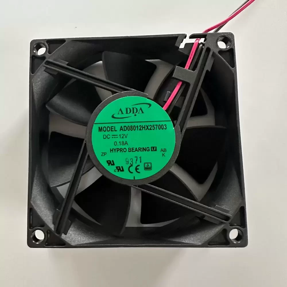 ADDA AD08012HX257003 is a 12VDC 80x80x25mm Axial Fan optimized for high-density thermal management in industrial automation environments. This unit features ADDA’s proprietary Hypro bearing architecture, which balances the cost-effectiveness of sleeve bearings with the longevity of ball bearings by reducing friction and thermal impedance. The aerodynamic impeller design is engineered for structural rigidity, ensuring stable airflow delivery even under significant backpressure. Operating at 0.18A with a rated speed of 3000 RPM, it generates a robust 38.6 CFM of airflow while maintaining a low acoustic profile of 33.4 dB(A), making it an ideal solution for noise-sensitive electronic enclosures.