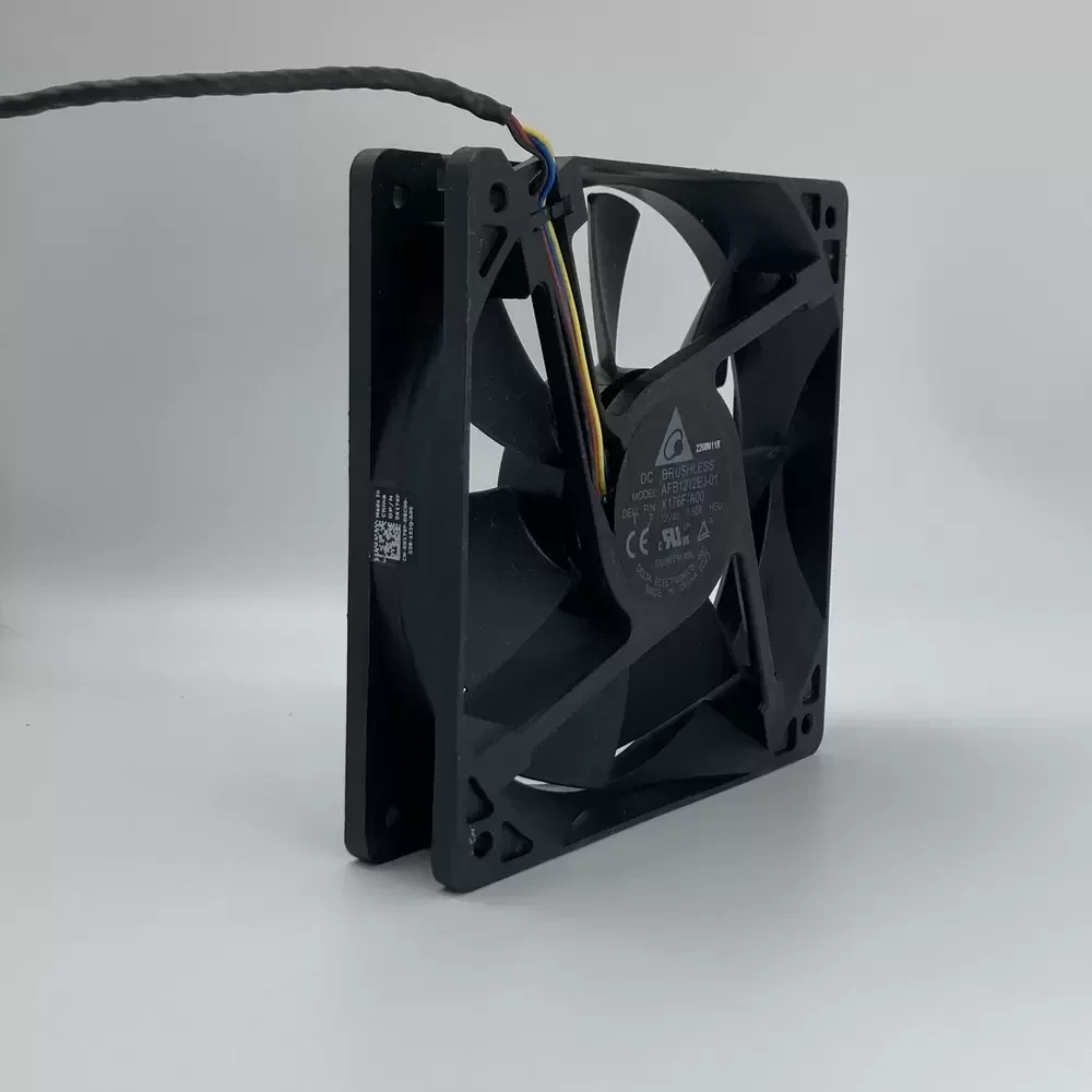 The Delta AFB1212EJ-01HGU is a high-performance DC Axial Fan engineered for demanding thermal management applications requiring substantial airflow and static pressure. This unit utilizes a robust DC motor architecture paired with a precision Double Ball Bearing system, ensuring minimized friction and extended operational longevity under continuous load. The aerodynamic design of the impeller optimizes air intake while reducing turbulence, effectively lowering thermal impedance within high-density enclosures. Featuring Pulse Width Modulation (PWM) speed control via a 4-wire interface, the fan allows for dynamic RPM adjustment based on real-time thermal requirements, balancing cooling efficiency with acoustic performance. Its structural rigidity and high-current specification make it suitable for critical industrial and server-grade environments.
