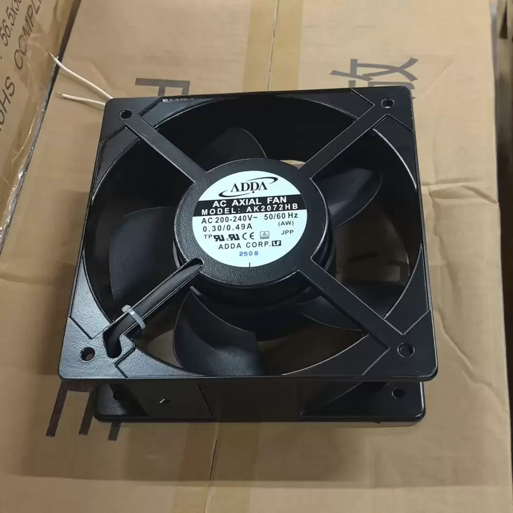 The ADDA AK2072HB is a robust AC Axial Fan engineered for high-demand industrial thermal management and enclosure ventilation. Featuring a substantial 205x72mm form factor, this unit utilizes a durable ball bearing system to ensure longevity and operational stability under continuous loads. The fan operates on a 200-240VAC input, delivering significant airflow through its aerodynamically optimized impeller design. Constructed with a die-cast aluminum frame for structural rigidity and thermal dissipation, the AK2072HB minimizes thermal impedance in enclosure environments. Its high-torque motor design ensures consistent performance across 50/60Hz frequencies, making it an ideal solution for critical cooling applications requiring reliable air exchange and static pressure maintenance.