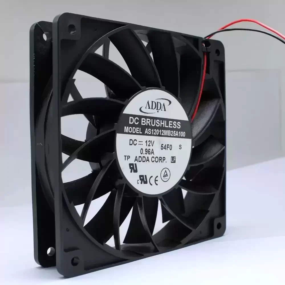 The ADDA AS12012MB25A100 is a high-performance DC Axial Fan engineered for demanding thermal management applications requiring substantial volumetric airflow. Utilizing a robust Dual Ball Bearing architecture, this unit ensures minimized rotational friction and exceptional structural rigidity, significantly extending operational longevity under continuous high-speed loads. The aerodynamic impeller design is optimized to deliver high static pressure while reducing thermal impedance within dense electronic enclosures. Operating at a rated 12VDC with a current draw of 0.96A, the AS12012MB25A100 provides aggressive cooling capabilities, making it a critical component for stabilizing temperatures in mission-critical industrial hardware and power-dense systems.