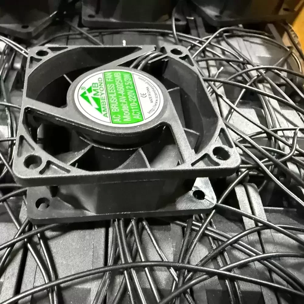 The AMBEYOND AV-A6025MB is a precision-engineered EC Axial Fan designed for critical thermal management applications requiring high efficiency and reliability. Utilizing advanced Electronically Commutated (EC) motor technology, this unit bridges the gap between AC convenience and DC efficiency, offering superior torque-to-weight ratios. The chassis houses a robust dual ball bearing system, ensuring minimal friction and extended operational longevity even under continuous load. Its aerodynamic impeller design optimizes airflow dynamics to reduce turbulence and lower thermal impedance within high-density enclosures. Constructed with structural rigidity in mind, the AV-A6025MB maintains stability across a wide voltage range of 110-220VAC, making it an ideal solution for industrial environments demanding consistent cooling performance.