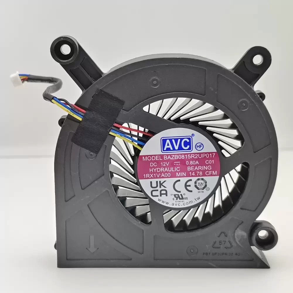 The AVC BAZB0815R2U-P012 is a 12VDC 80x80x15mm Centrifugal Blower optimized for high-density thermal management in space-constrained All-in-One (AIO) computing environments. Engineered with a high-amperage 7.80A motor, this blower is designed to overcome significant thermal impedance within compact chassis by generating concentrated airflow of 14.78CFM. The unit features a sophisticated 4-wire PWM control interface for precise RPM modulation, ensuring structural rigidity and low vibration during peak operation. Its dual ball bearing architecture is specifically selected to maintain long-term reliability and minimize friction in horizontal mounting orientations common in modern desktop hardware.