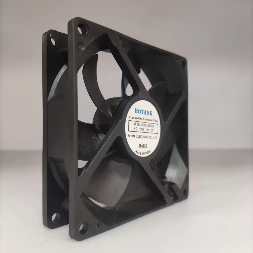The BOYANG BY9225HE2 is a precision-engineered EC Axial Fan designed for critical thermal management applications requiring high efficiency and reliability. Featuring advanced Electronically Commutated (EC) motor technology, this unit combines the high-performance characteristics of DC brushless motors with the direct compatibility of AC mains power. The 92mm frame houses a robust motor architecture that ensures reduced thermal impedance and superior structural rigidity. Optimized for continuous industrial operation, the BY9225HE2 delivers consistent high-volume airflow while maintaining a low 5W power profile, making it an exceptional solution for reducing energy consumption in high-density electronic enclosures.
