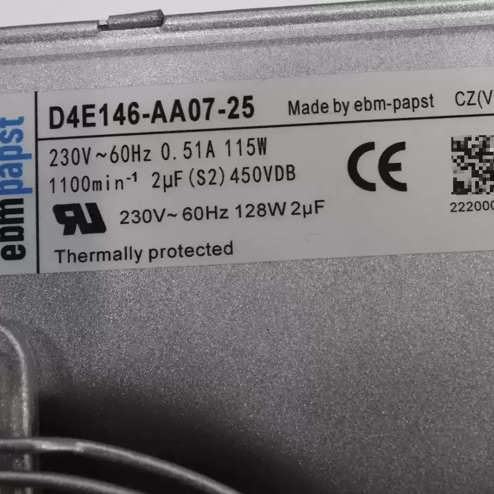 The ebm-papst D4E146-AA07-25 is a robust AC centrifugal fan designed for high-pressure air movement in industrial environments. Engineered with a forward-curved impeller housed within a galvanized sheet steel scroll, this unit optimizes aerodynamic efficiency while minimizing acoustic resonance. The system is driven by the M4E068-EC single-phase AC motor, featuring maintenance-free ball bearings that ensure long-term reliability and reduced thermal impedance under continuous operation. Its structural rigidity allows for stable mounting in demanding HVAC and cooling applications. With integrated thermal overload protection and an IP44 ingress rating, the D4E146-AA07-25 delivers consistent performance, balancing airflow dynamics with energy efficiency for critical thermal management systems.