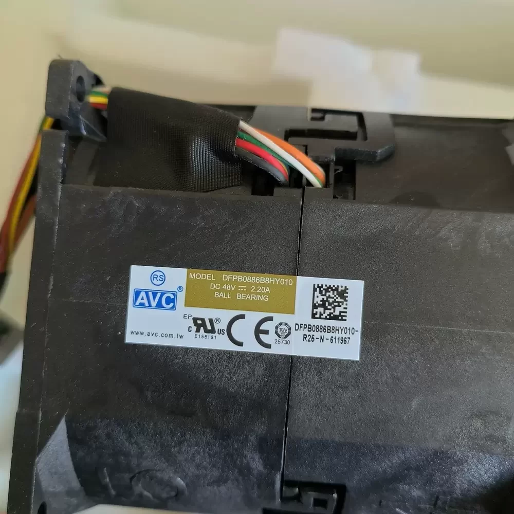 The AVC DFPB0886B8HY010 is a specialized high-static pressure axial fan designed for mission-critical thermal management in dense server environments. Utilizing advanced dual-motor technology with counter-rotating blade geometry, this unit maximizes airflow efficiency while significantly overcoming system impedance. The 48VDC architecture supports robust operation under heavy loads, ensuring optimal heat dissipation for high-density computing clusters. Engineered with precision ball bearings, the fan offers superior structural rigidity and longevity, maintaining performance stability even in continuous duty cycles. Its aerodynamic profile reduces turbulence-induced noise while delivering exceptional static pressure capabilities required for restricted airflow chassis.