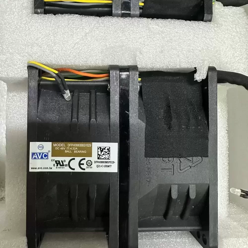 The AVC DFPL0880B8UY008 is a specialized Dual Motor Axial Fan designed for extreme thermal management applications requiring high static pressure and substantial airflow throughput. Engineered with a robust 48VDC counter-rotating motor architecture, this unit effectively overcomes high system impedance in dense electronic enclosures by straightening airflow and minimizing backpressure. The fan assembly utilizes precision ball bearings to ensure rotational stability and longevity under the stress of high-velocity operation. Its structural rigidity is maintained by a reinforced thermoplastic housing, making it suitable for continuous duty in harsh industrial environments where thermal impedance must be aggressively managed to protect critical hardware components.