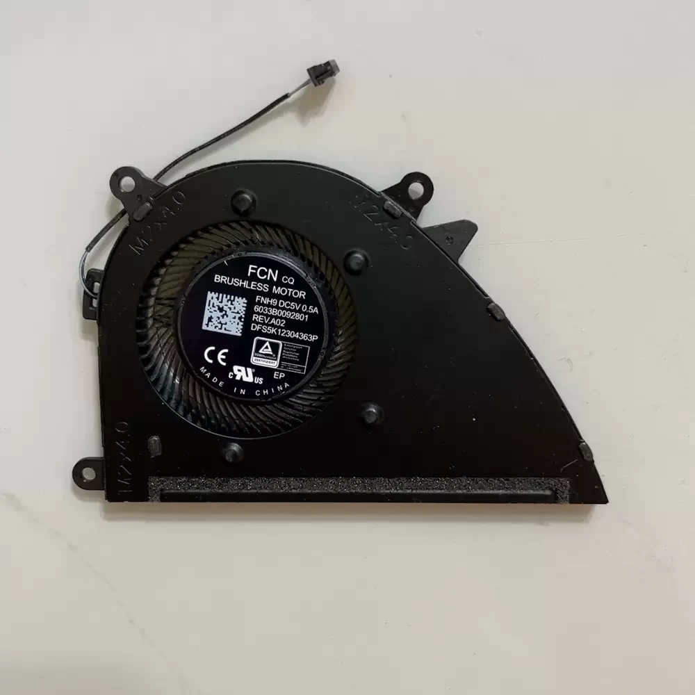 FCN DFS5K12304363P is a 5VDC centrifugal blower optimized for high-density thermal management in ultra-thin computing architectures. Engineered with a precision DC brushless motor and advanced fluid dynamic bearing architecture, this unit ensures minimal thermal impedance and maximum structural rigidity under continuous load. The aerodynamic impeller design accelerates lateral airflow, effectively dissipating heat from critical CPU and GPU components. Operating at a rated current of 0.5A and consuming 2.5W of power, it delivers an optimal balance of static pressure and acoustic efficiency. This OEM replacement fan is specifically calibrated for seamless integration into HP ProBook and ENVY series laptops, restoring factory-level thermal dissipation and preventing thermal throttling in space-constrained chassis environments.