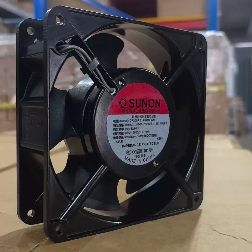 The Sunon DP200 2123XBT.GB is a high-reliability AC Axial Fan designed for rigorous industrial thermal management applications. Engineered with a precision-wound copper wire core and a robust Dual Ball Bearing system, this unit delivers consistent performance and reduced friction, significantly extending operational lifespan. The 120mm frame geometry is optimized to minimize thermal impedance while maintaining structural rigidity under continuous duty cycles. Its aerodynamic impeller design ensures efficient air exchange, making it an ideal solution for environments requiring stable cooling and vibration resistance.