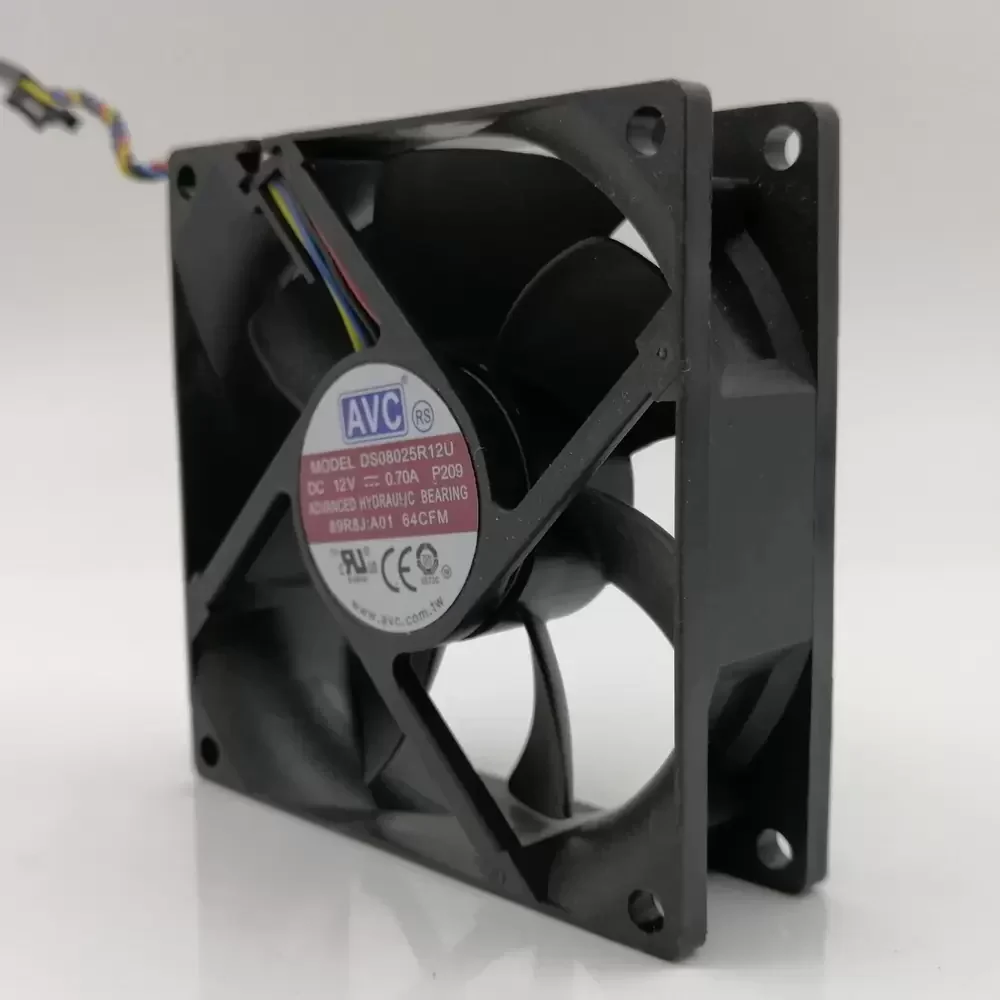 The AVC DS08025R12U-P209 is a high-performance DC axial fan engineered for critical thermal management in dense electronic enclosures and CPU cooling applications. Utilizing advanced hydraulic bearing architecture, this unit delivers exceptional rotational stability and longevity while mitigating frictional noise at high velocities. The aerodynamic impeller design is optimized to overcome significant system impedance, generating high static pressure required for heat sinks and restricted airflow channels. Integrated with a 4-wire PWM circuit, it allows for precise dynamic speed modulation, balancing thermal dissipation requirements with acoustic performance. The robust frame construction ensures structural rigidity under high-torque operation, making it an ideal solution for industrial computing and server environments.