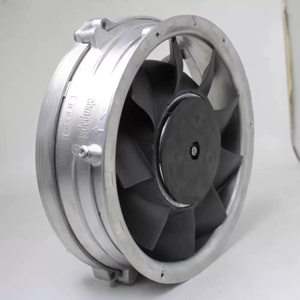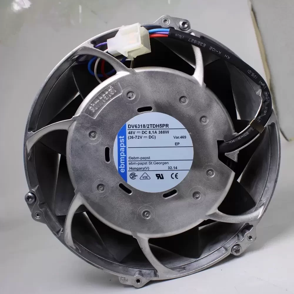 The ebm-papst DV6318/2TDH5PR is a high-efficiency diagonal fan designed for extreme thermal management applications requiring substantial static pressure and airflow. Engineered with the advanced S-Force motor technology, this unit features a robust aluminum die-cast housing that ensures structural rigidity under high-velocity operation. The 3-phase motor design, coupled with precision ball bearings, optimizes longevity and reduces thermal impedance within the system. Its aerodynamic diagonal impeller geometry significantly enhances air compression, making it superior to standard axial counterparts in high-resistance environments. This 48VDC unit delivers exceptional power density, utilizing a 388W motor to drive massive air volume for critical industrial cooling.
