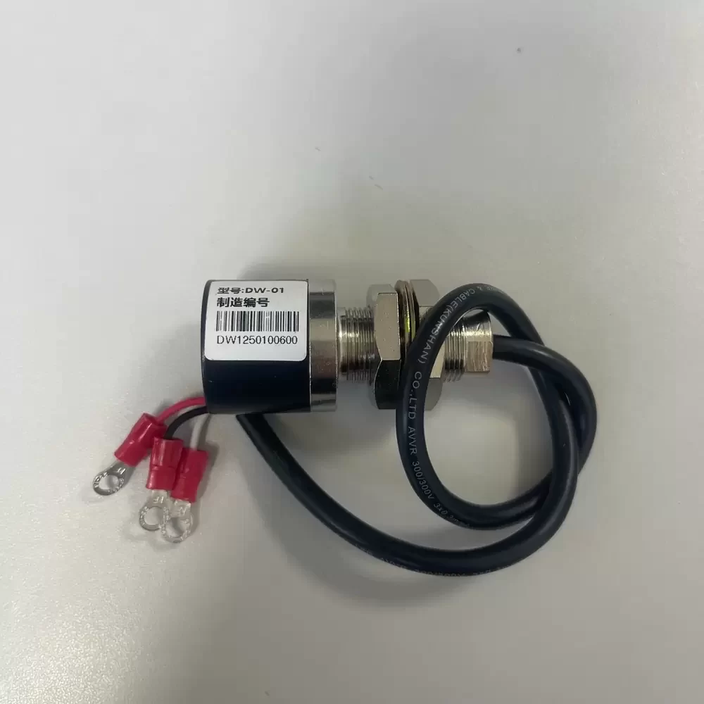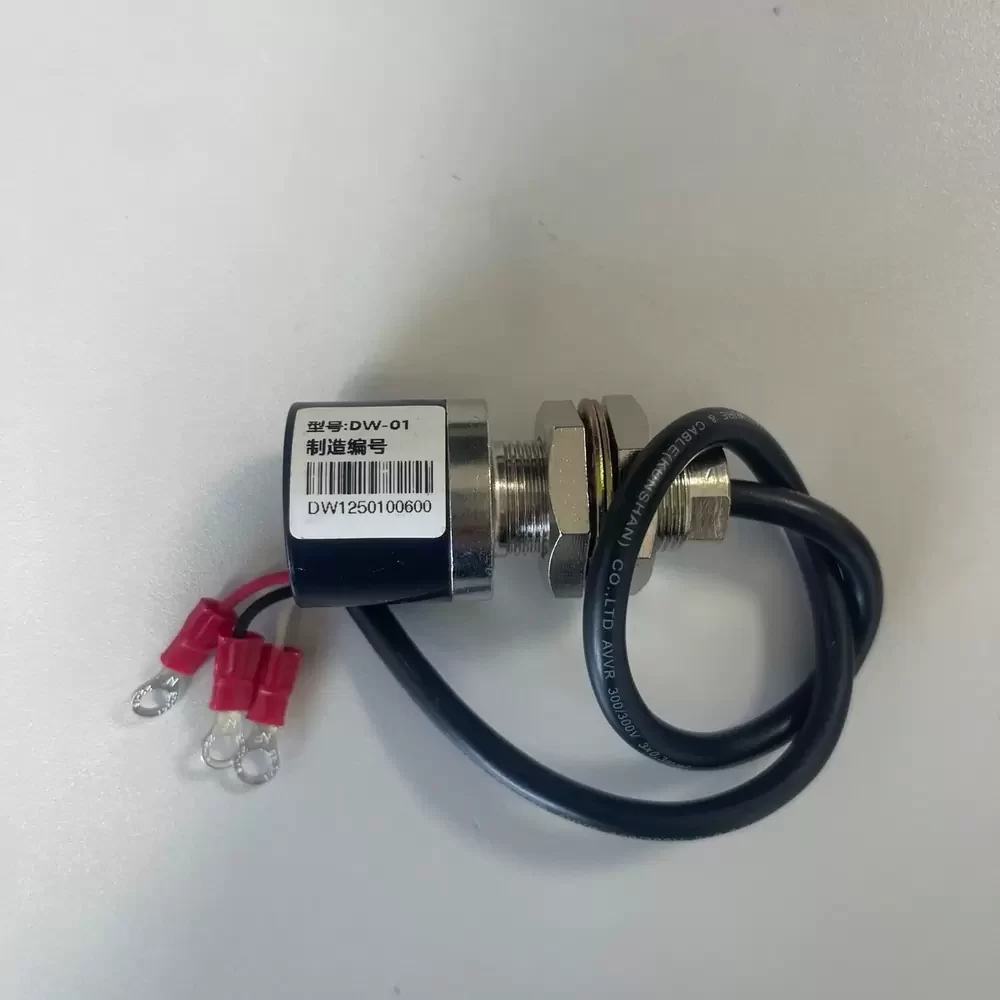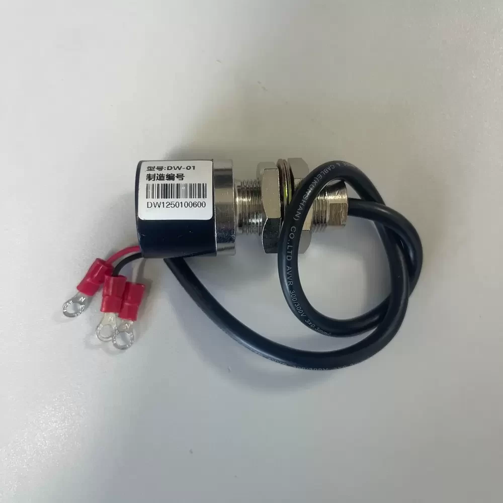 The Hitachi DW-01 is a high-precision eddy current sensor engineered for non-contact load detection and car bottom weighing in elevator systems. Utilizing electromagnetic induction to measure distance variations between the sensor and the elevator car frame, it provides real-time feedback for overload protection and floor leveling accuracy. This industrial-grade component features a robust housing designed to withstand the high-vibration environment of elevator shafts while maintaining a stable output signal for the lift controller.