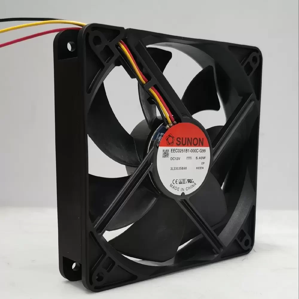 The Sunon EEC0251B1-000C-A99 is a high-efficiency DC axial fan engineered for demanding thermal management applications requiring substantial airflow density. Utilizing advanced motor technology and a precision-balanced impeller, this unit minimizes structural vibration while optimizing aerodynamic throughput. The construction features a robust thermoplastic PBT housing rated to UL94V-0 standards, ensuring structural rigidity and fire resistance in industrial environments. Equipped with a dual ball bearing system, the fan offers reduced friction coefficients and superior thermal impedance characteristics, significantly extending operational service life under continuous load. The integrated 3-wire tachometer output facilitates real-time RPM monitoring, allowing for precise closed-loop control in critical cooling systems.