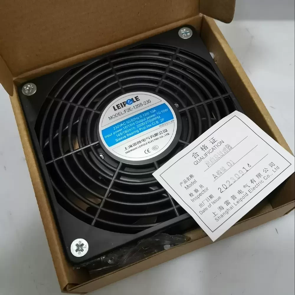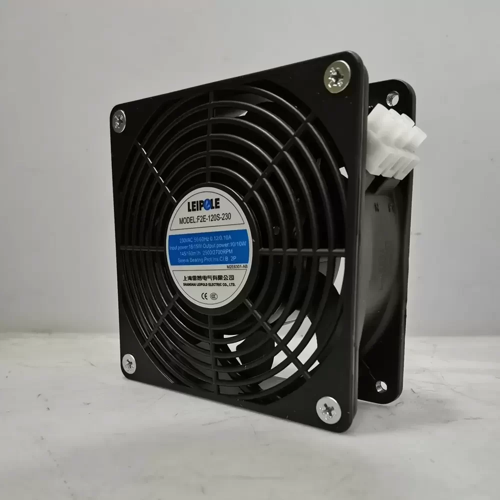 The Leipole F2E-120S-230 is a precision-engineered AC axial fan designed for robust thermal management in industrial enclosures and electrical cabinets. Utilizing an impedance-protected AC motor architecture, this unit operates efficiently across dual frequencies, delivering consistent airflow to mitigate thermal impedance within high-density environments. The structural rigidity of the 120x120x38mm frame ensures stability under continuous operation, while the sleeve bearing system provides a cost-effective solution optimized for vertical mounting orientations. Engineered for reliability, the F2E-120S-230 balances power consumption with aerodynamic performance, making it a critical component for maintaining optimal operating temperatures in electrical distribution boards, automation control panels, and server racks requiring standard AC cooling solutions.
