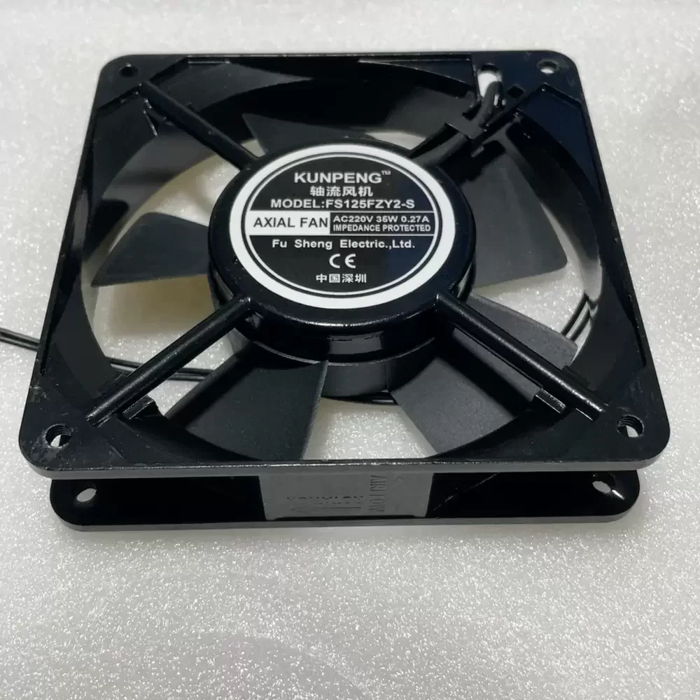 The KUNPENG FS125FZY2-S is a robust industrial axial fan designed for high-reliability thermal management applications. Engineered with a durable aluminum alloy housing and precision-balanced black impeller blades, this unit ensures structural rigidity and optimal aerodynamic performance under continuous operation. The device utilizes a high-grade ball bearing system to minimize frictional losses and extend service life, effectively managing thermal impedance in enclosed environments. Operating at 220VAC, the motor assembly delivers consistent airflow with a power consumption of 35W, making it an ideal solution for demanding AC cooling requirements where stability and heat dissipation efficiency are critical.