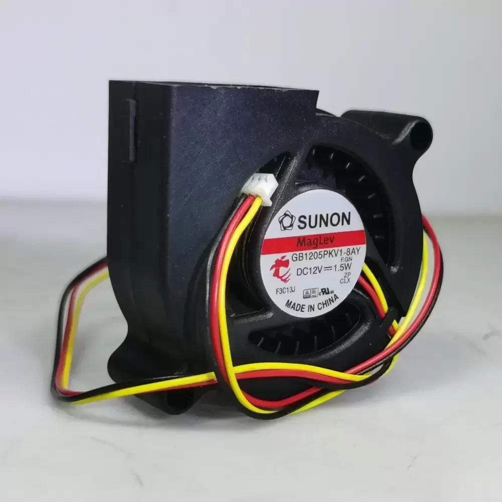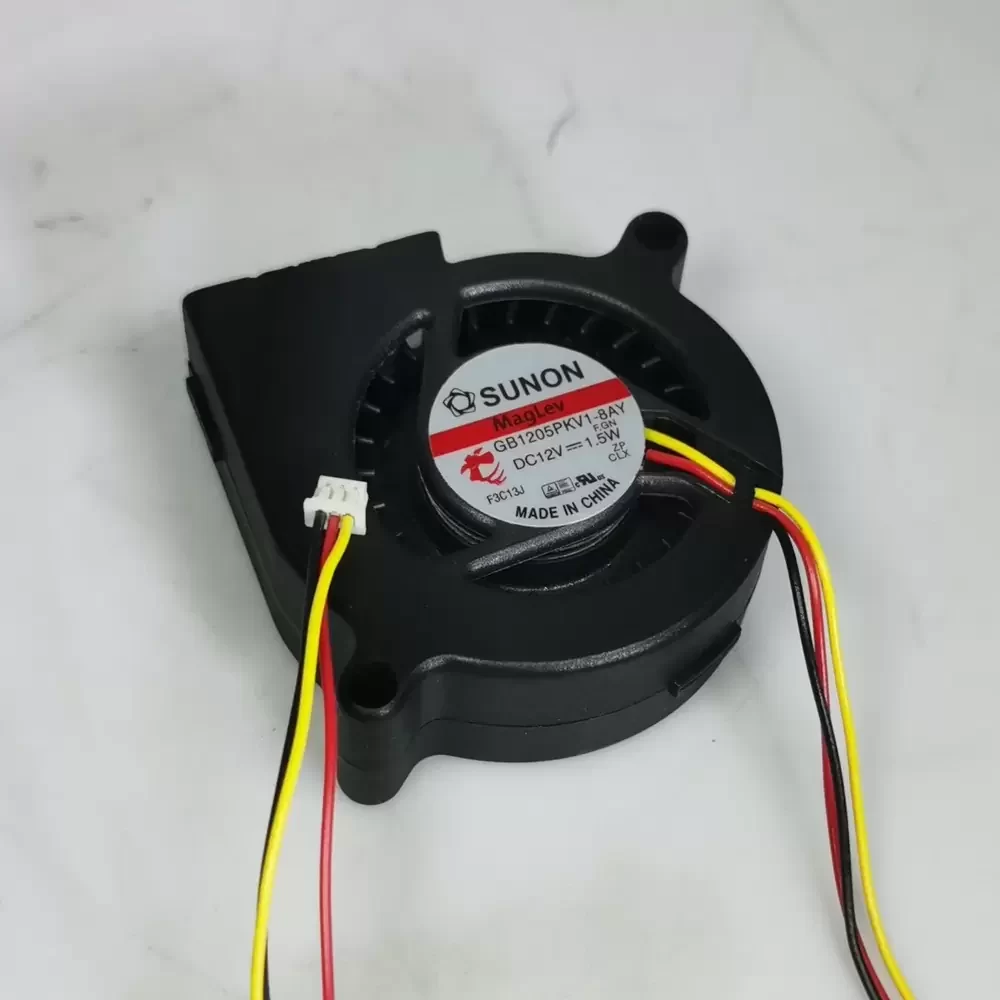 The Sunon GB1205PKV1-8AY.F.GN is a precision-engineered DC centrifugal blower designed for high-density thermal management applications. Utilizing Sunon’s proprietary MagLev Vapo bearing technology, this unit eliminates physical contact between the shaft and bearing, significantly reducing noise and extending operational lifespan while maintaining exceptional structural rigidity. The aerodynamic design of the impeller maximizes static pressure delivery, ensuring efficient airflow through restricted pathways. With a rated power of 1.5W and a 3-wire signal output, this blower offers reliable performance and monitoring capabilities, optimizing thermal impedance in compact electronic assemblies.