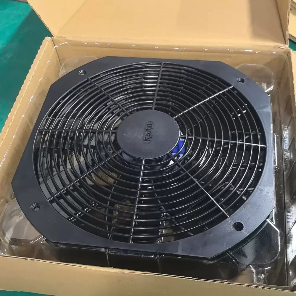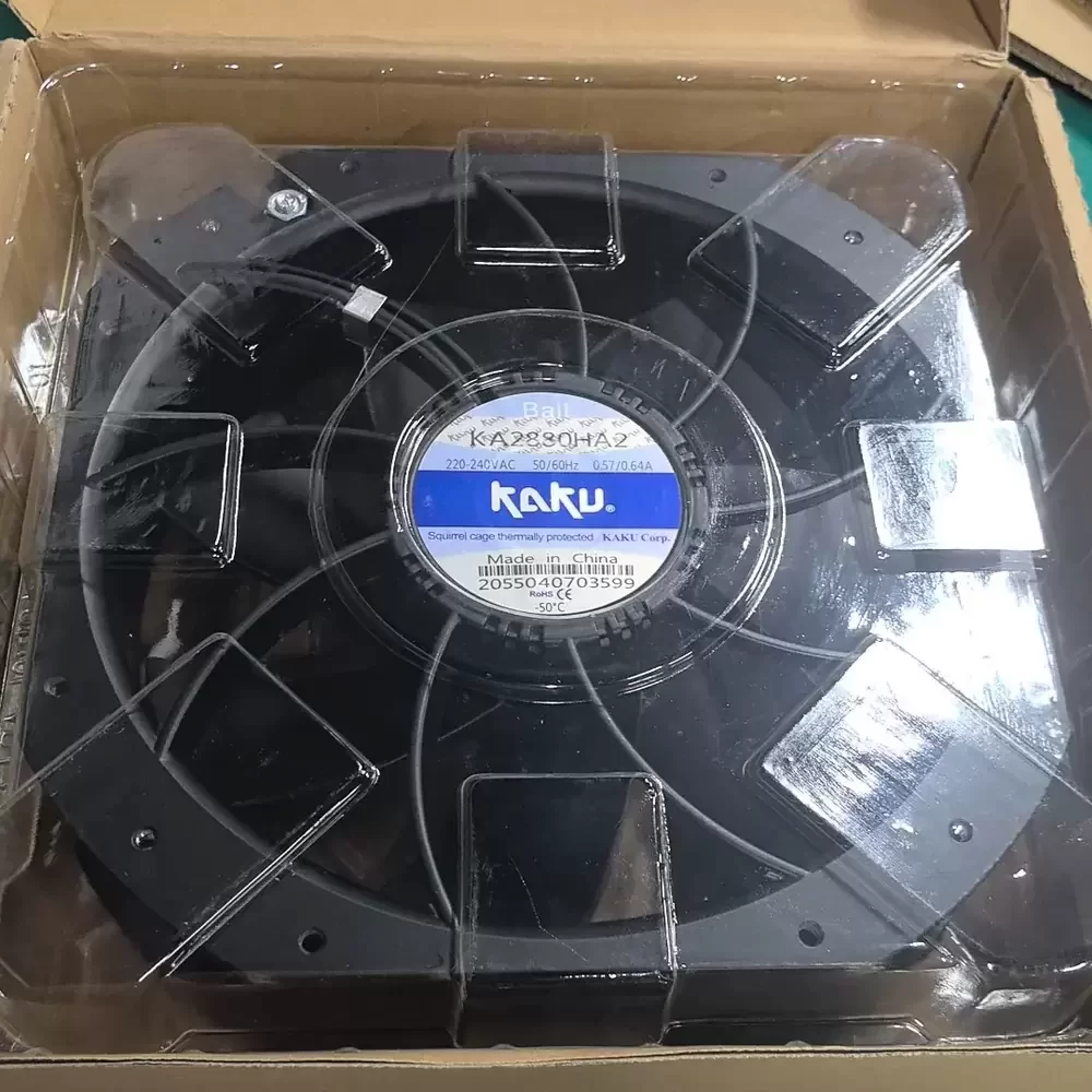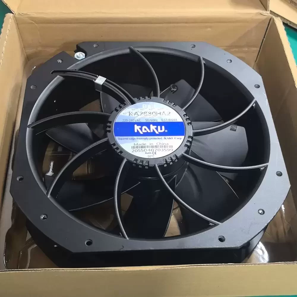 The KAKU KA2880HA2 is a high-capacity AC Axial Fan designed to deliver superior thermal management in demanding industrial environments. Engineered with a robust AC induction motor and a precision ball bearing system, this unit ensures exceptional operational stability and extended service life under continuous duty cycles. The fan features a durable die-cast aluminum frame that provides high structural rigidity and aids in heat dissipation, while the aerodynamically optimized impeller maximizes airflow efficiency. This configuration significantly reduces thermal impedance, making it a reliable choice for critical cooling applications requiring high static pressure and volume.