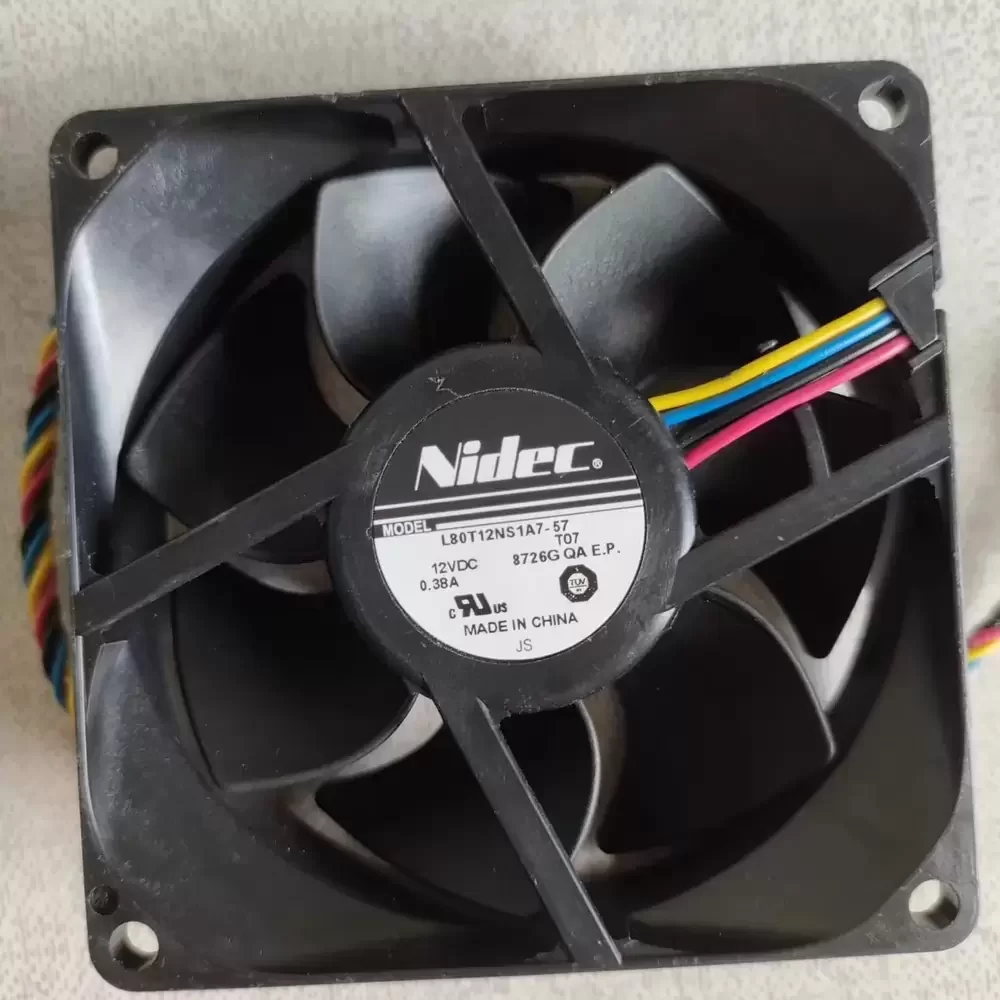 Nidec L80T12NS1A7-57T07 is a 12VDC 80x80x25mm Axial Fan optimized for high-density thermal management in space-constrained enclosures. Engineered with a brushless DC motor and a precision dual ball bearing architecture, this unit minimizes thermal impedance while maintaining structural rigidity under continuous duty cycles. The aerodynamic impeller design is specifically tuned to deliver a robust 0.38A current draw, translating to high-velocity airflow and significant static pressure to overcome internal system resistance. This model integrates advanced 4-wire PWM speed control, allowing for dynamic RPM adjustments to balance acoustic output with cooling demands in mission-critical hardware.