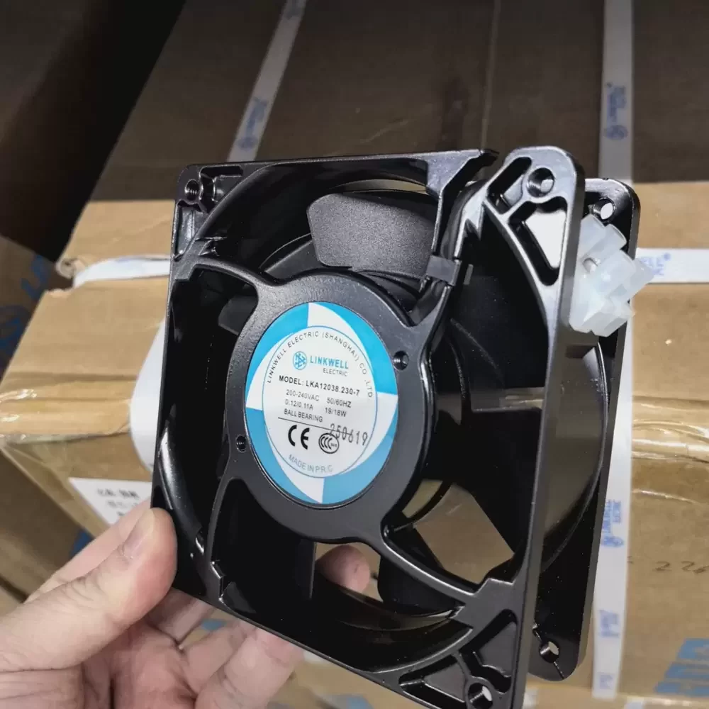 The LINKWELL LKA12038.230-7 is a high-reliability AC axial fan engineered for demanding industrial thermal management applications. Designed with a robust motor architecture, this unit delivers consistent performance to maintain optimal thermal impedance within enclosed electronic systems. The fan features a die-cast aluminum housing that provides exceptional structural rigidity and heat dissipation properties, ensuring durability in harsh operating environments. Its aerodynamic impeller design is optimized to maximize airflow efficiency while minimizing turbulence and acoustic noise. Ideal for continuous duty cycles, the LKA12038.230-7 integrates precision bearing technology to reduce friction and extend the operational lifespan of the component, making it a critical asset for maintaining system stability.