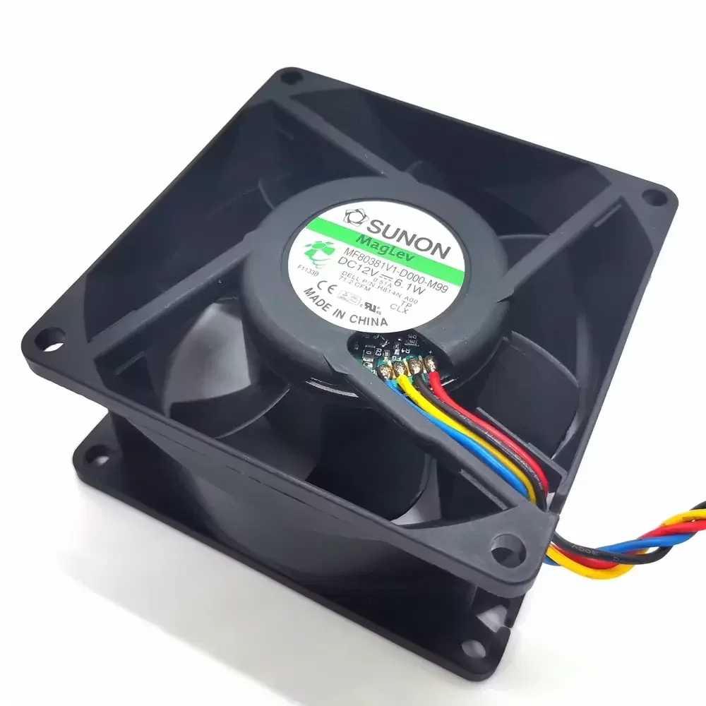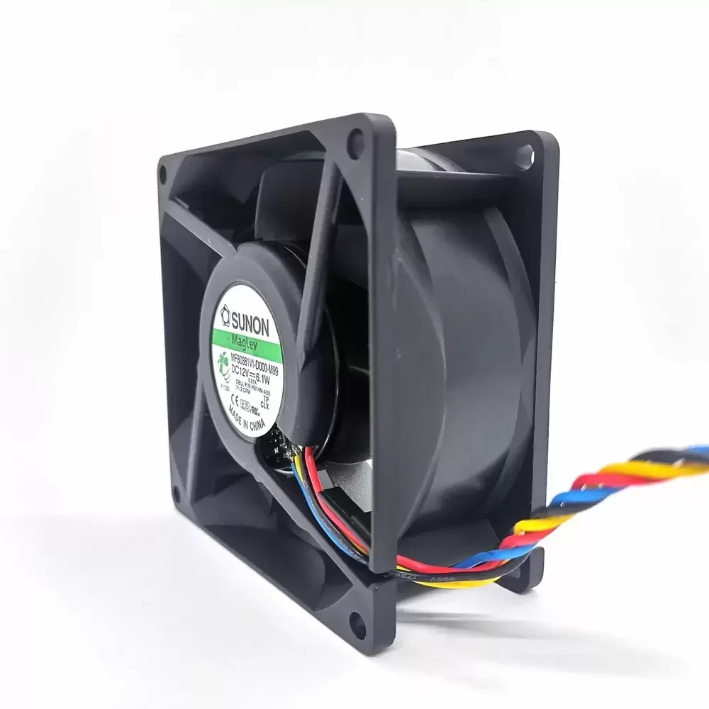 The SUNON MF80381V1-D000-M99 is a high-efficiency DC Axial Fan engineered for critical thermal management applications requiring substantial airflow density. Utilizing SUNON’s proprietary Magnetic Levitation (MagLev) bearing architecture, this unit eliminates physical contact between the shaft and bearing, significantly reducing mechanical friction and acoustic signature while optimizing thermal impedance. The 80x80x38mm frame offers superior structural rigidity, housing an impeller designed for high static pressure generation. Operating at 12VDC with a power consumption of 6.1W, it delivers a robust airflow of 84 CFM at 6300 RPM. The integration of a 4-wire PWM control interface allows for precise dynamic speed modulation, ensuring optimal cooling performance relative to system load.