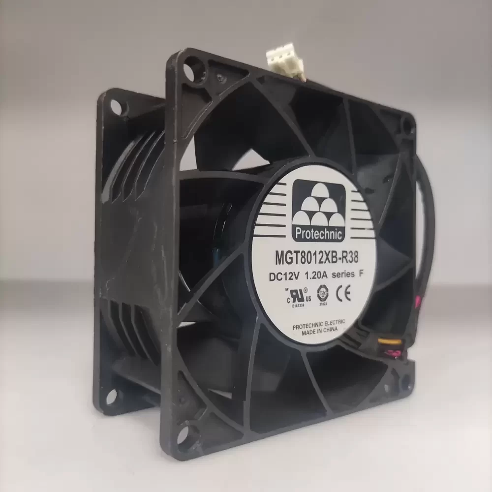 The Magic MGT8012XB-R38 is a high-performance industrial cooling fan designed to meet the rigorous thermal demands of power supply units and server equipment. Featuring a robust 80mm frame and a high-speed motor, this unit delivers substantial airflow to effectively dissipate heat from critical components. Built with dual ball bearings, it ensures long-term reliability and stable operation, making it an exact replacement for specific UPS models and a versatile choice for heavy-duty electronics.