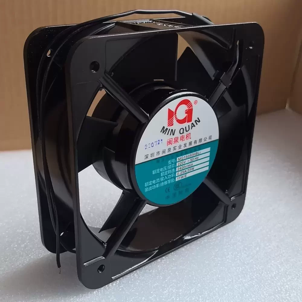 The Minquan MQ15050HBL2 is a heavy-duty AC Axial Fan engineered for critical thermal management in industrial environments. Featuring a precision-balanced induction motor assembly and a durable Ball Bearing architecture, this unit ensures consistent operational stability and minimized thermal impedance over extended duty cycles. The aerodynamic profile is housed within a rugged die-cast aluminum frame, providing exceptional structural rigidity and effective heat dissipation. Designed for 220VAC systems, it delivers high-volume airflow through specifically contoured thermoplastic blades, making it an ideal solution for overcoming high system resistance in densely populated electrical enclosures and machinery.