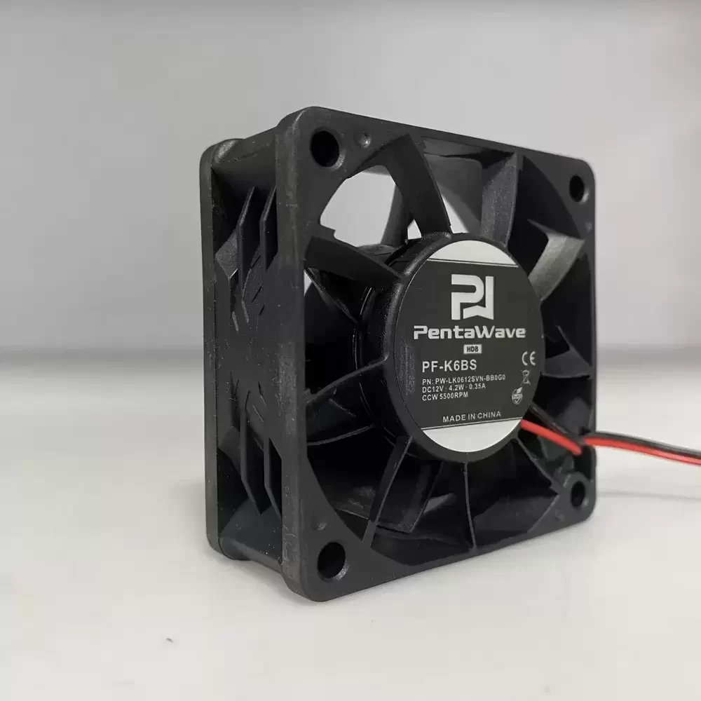 The Pentawave PF-K6BS is a high-performance DC axial fan designed for robust thermal management in compact electronic environments. Featuring a standard 6025 form factor, this unit operates at a rated voltage of 12V with a current draw of 0.35A, delivering a high rotational speed of 5500RPM. Engineered for reliability and efficiency, it utilizes a durable 2-wire interface, making it an excellent choice for replacing stock fans or integrating into new industrial cooling systems requiring consistent airflow.