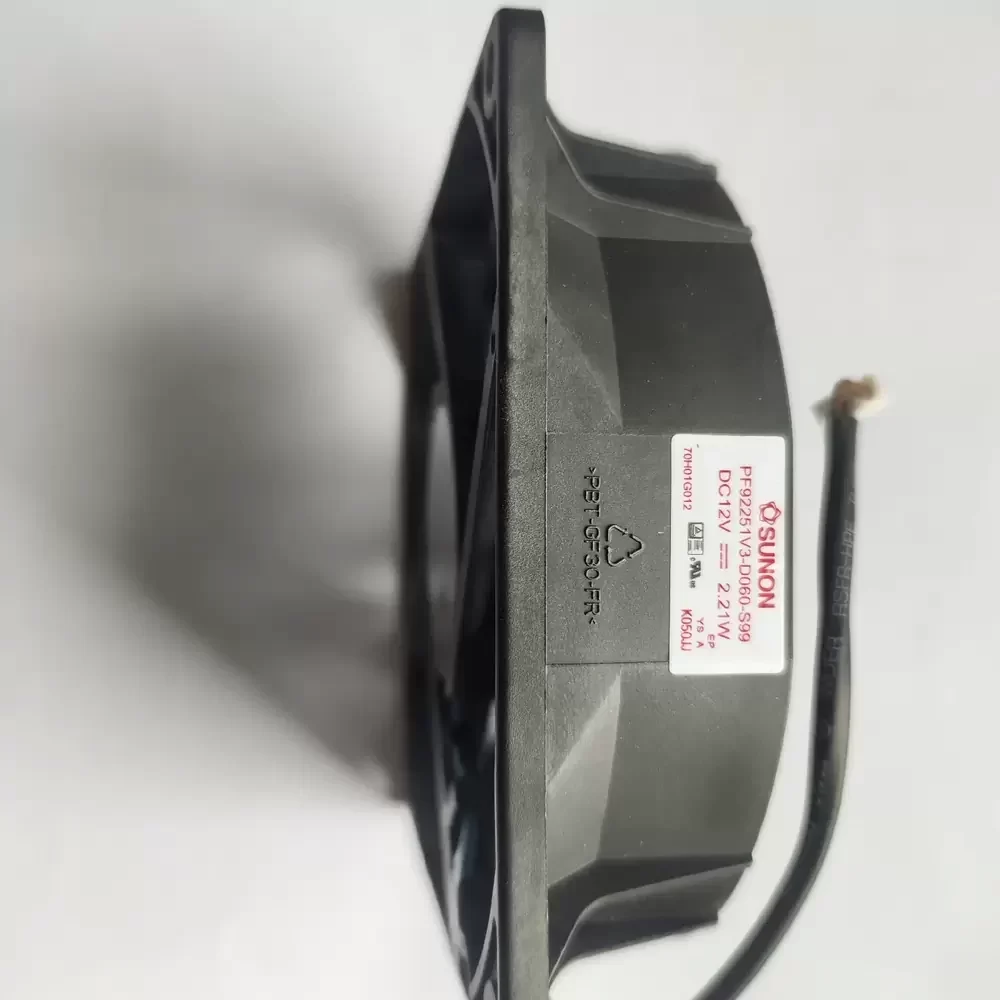 The SUNON PF92251V3-D060-S99 is a precisely engineered axial fan designed for critical thermal management in high-density projection equipment and industrial electronics. This fan utilizes SUNON’s proprietary MagLev (magnetic levitation) motor technology and Vapo bearing system, eliminating physical contact between the shaft and bearings, significantly reducing friction, vibration, and noise while extending lifespan. Its aerodynamic impeller design optimizes static pressure output, ensuring efficient airflow through the dense heat sinks in the optical engine. With its robust structural rigidity and low thermal resistance, this 12VDC cooling solution remains stable even under continuous load, making it ideal for sensitive electronic environments requiring consistent high-performance cooling to ensure optimal operating temperatures.