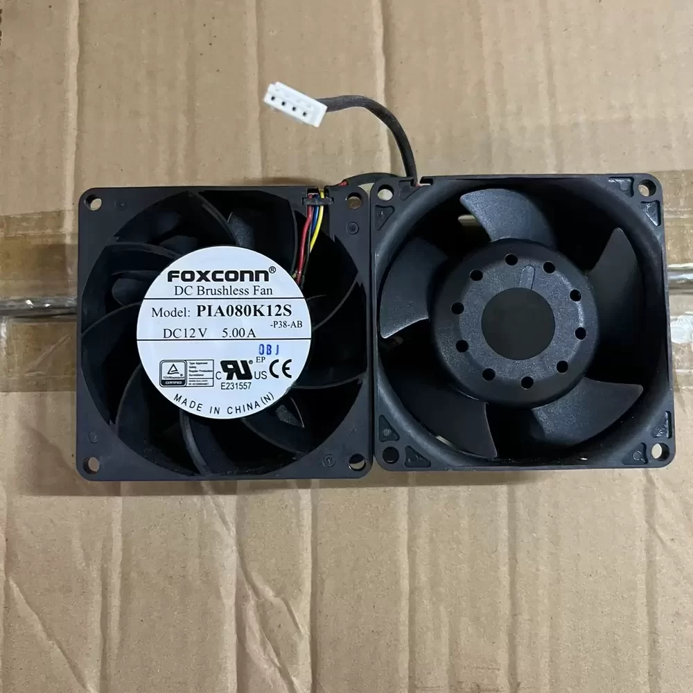 Foxconn PIA080K12S-P38-AB is a 12VDC 80x80x38mm Axial Fan optimized for extreme thermal density and high-impedance cooling environments. Engineered with a high-torque DC motor and precision dual ball bearing architecture, this unit minimizes thermal impedance while maintaining structural rigidity under high rotational stress. The aerodynamic impeller design is specifically tuned to deliver a massive 5.00A current draw, translating to exceptional RPM and static pressure capabilities required for dense server arrays. This 4-wire PWM controlled fan provides precise modulation of airflow, ensuring efficient heat dissipation in mission-critical hardware where failure is not an option.