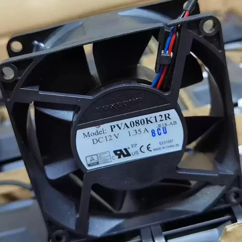 The Foxconn PVA080K12R-R18-AB is a high-performance DC Axial Fan designed to meet the rigorous thermal demands of enterprise computing and industrial automation. Engineered with a robust 12VDC motor drawing 1.35A, this unit generates significant airflow and static pressure, making it highly effective for high-impedance applications such as dense server racks and power supply units. The 80x80x38mm chassis is manufactured from durable thermoplastic to maintain structural rigidity under high-speed rotation. Featuring a precision bearing system and an optimized impeller design, it balances thermal efficiency with mechanical reliability. This fan is an essential component for maintaining optimal operating temperatures in mission-critical hardware, preventing thermal throttling and extending component lifespan.