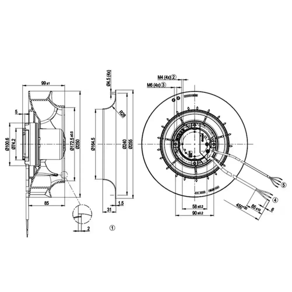 The R3G250-RE07-07 is specifically engineered for high-demand industrial environments requiring reliable airflow and pressure stability. Primary deployment scenarios include cooling systems for variable frequency drives (VFDs), solar inverters, and large-scale power converters where heat dissipation is critical. Additionally, the R3G250-RE07-07 serves effectively in IT infrastructure, such as server rack cooling modules and telecommunications base stations, as well as in precision air conditioning units and medical diagnostic equipment requiring low-vibration operation.