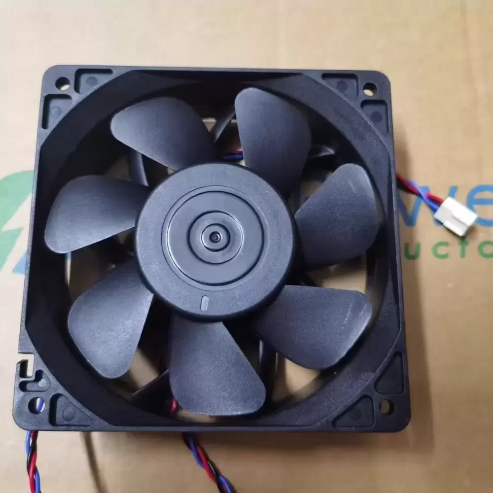 SHLF RB1238H12B-6 is a high-performance axial cooling fan measuring 120 x 120 x 38 mm, operating at a nominal 12 VDC with a 1.60 A current draw. It features a robust double ball bearing system and a 3-wire interface for power and speed monitoring. The housing is constructed from UL 94V-0 rated PBT plastic, housing a high-torque motor capable of reaching 4500 RPM to generate significant static pressure and high-velocity airflow for thermal management in dense environments.