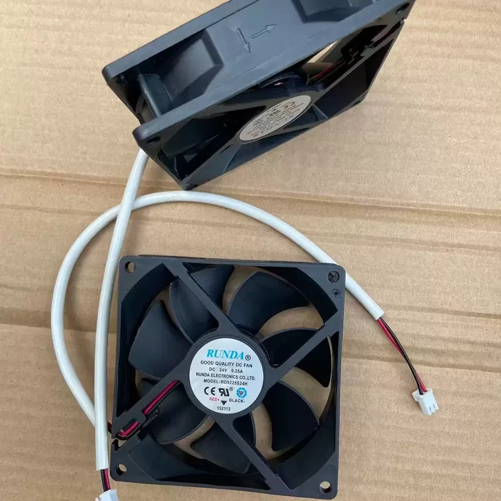 RUNDA RD9225S24SH is a 24VDC 92x92x25mm Axial Fan optimized for high-demand thermal management in industrial power electronics. Featuring a robust DC motor architecture and precision-engineered sleeve bearings, this unit minimizes thermal impedance in confined enclosures. The structural rigidity of the UL94V-0 plastic housing ensures stability at a rated speed of 3200 RPM. Drawing 0.25A, it delivers significant static pressure to overcome internal resistance in compact inverter modules. Its aerodynamic blade profile is designed for continuous duty cycles, providing reliable heat dissipation for critical components.