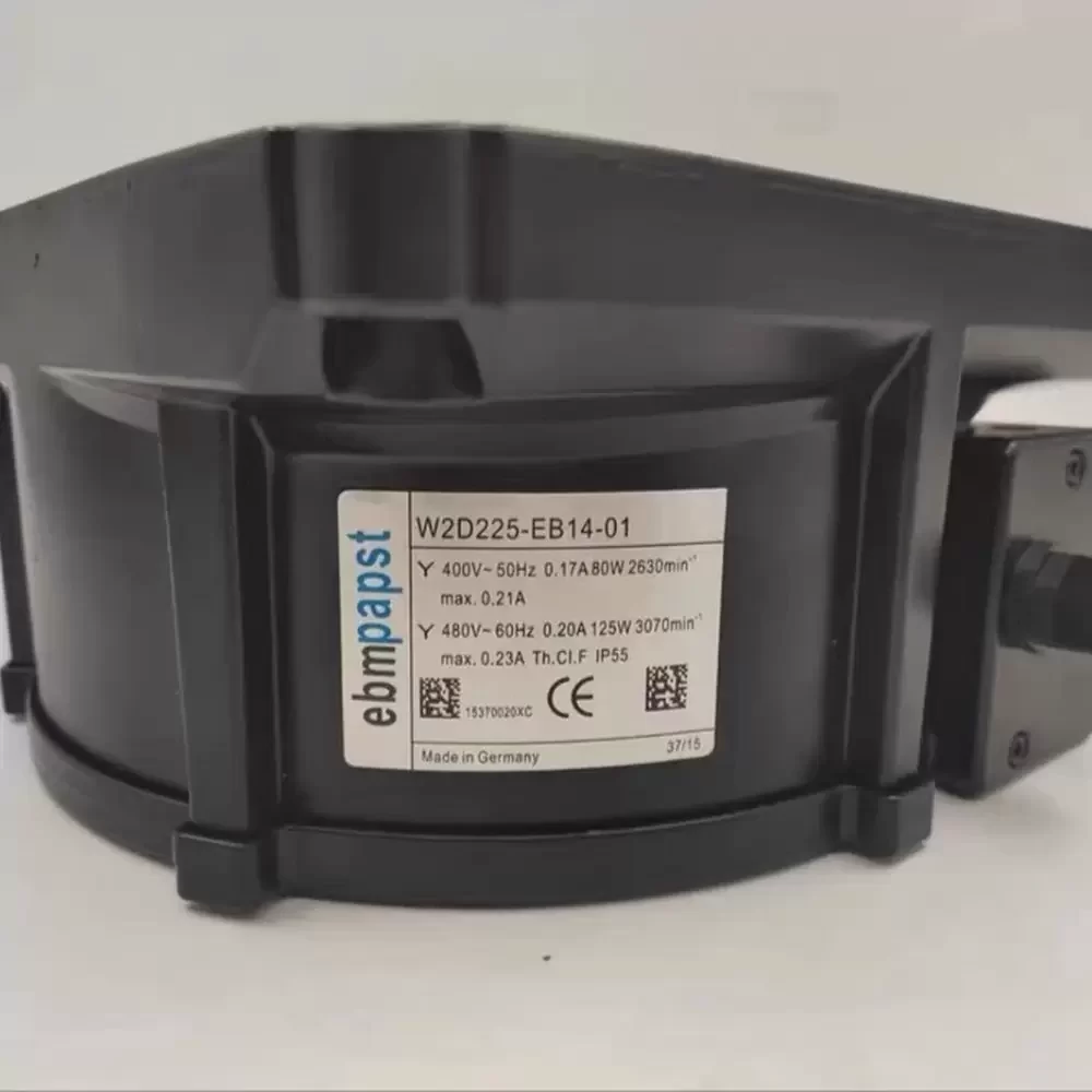 ebm-papst W2D225-EB14-01 is a 400/480VAC 225mm Axial Fan optimized for high-performance thermal management in industrial drive systems and power electronics. This unit features a robust external rotor motor design with an integrated capacitor-run induction system, ensuring high structural rigidity and reduced thermal impedance during continuous operation. The aerodynamic profile of the seven-blade impeller is engineered to minimize turbulence while maintaining high static pressure. Operating at 2630RPM (50Hz) and 3070RPM (60Hz), it delivers significant airflow to dissipate heat from high-density enclosures. The IP55 rating ensures protection against dust and moisture ingress, making it a reliable solution for demanding environments requiring 80W to 125W of cooling power.